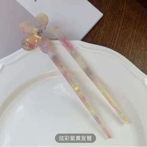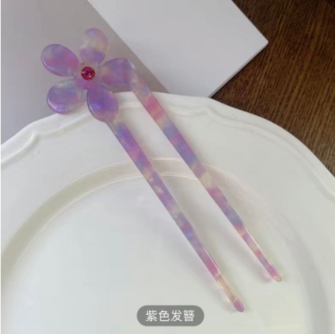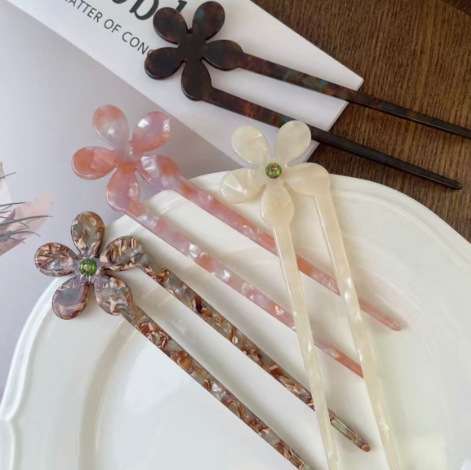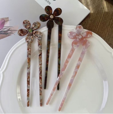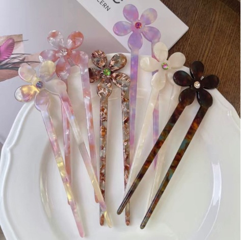 2024 새로운 골동품 꽃 머리핀 간단한 다이아몬드 꽃잎 아세트산 머리핀 달콤한 아름다움 공 머리 머리핀 헤어 액세서리