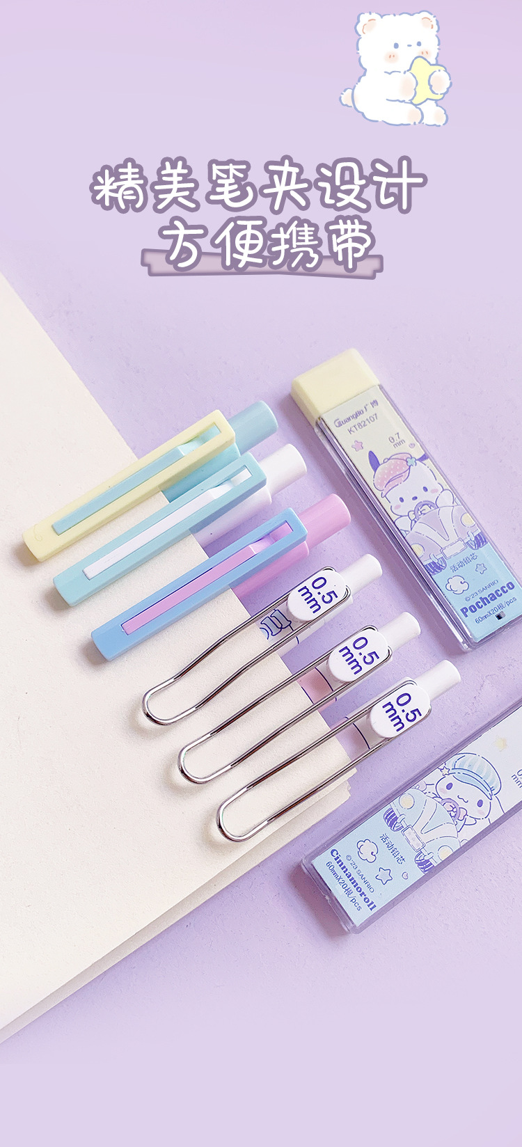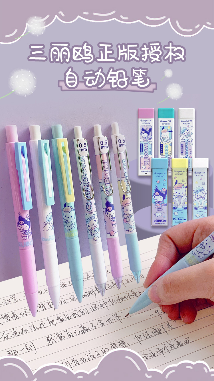 Net Red Sanrio 초등학교 특수 연필 0.5 조합 높은 색 가치 0.7 자동 연필 리드 세트
