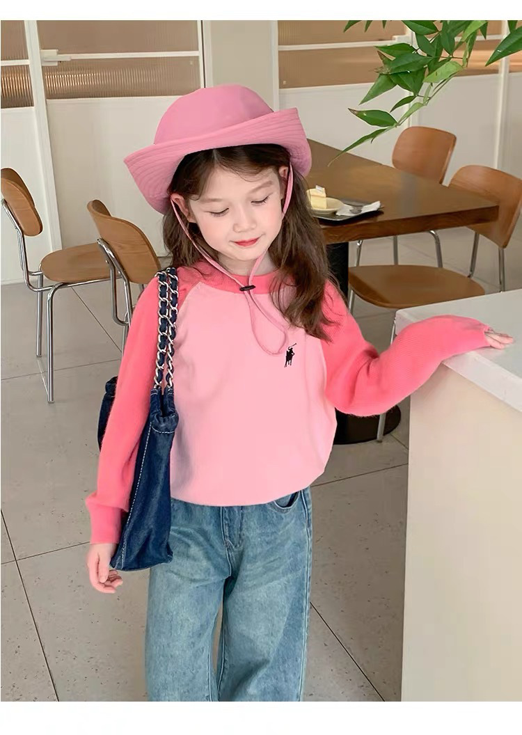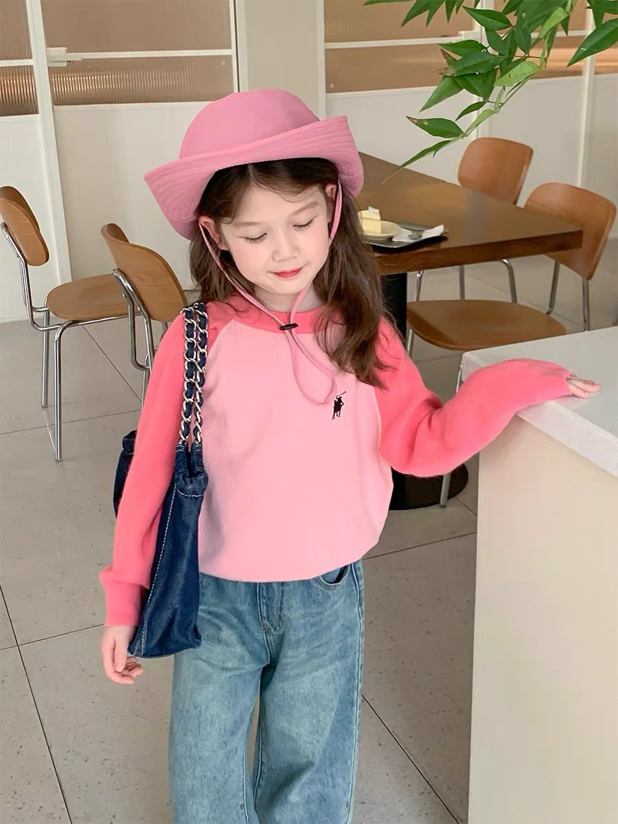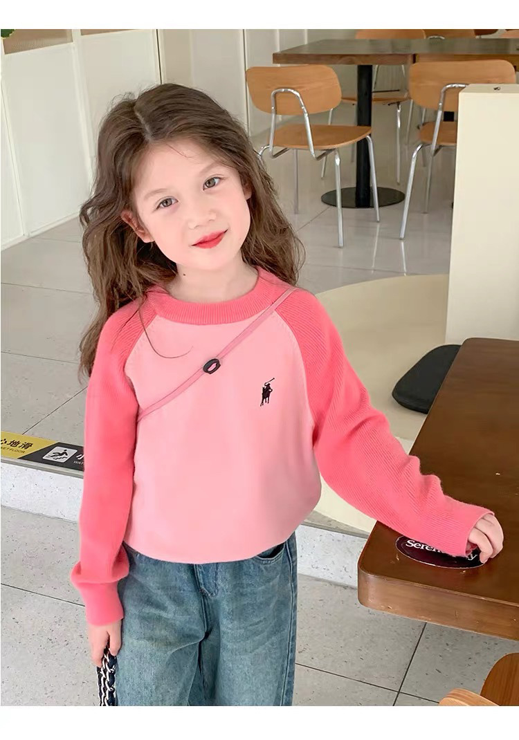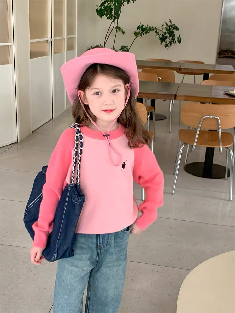 503 소녀 니트 스웨터 2024 봄과 가을 새로운 어린이 서양식 스웨터 아기 소녀 캐주얼 탑 라운드 넥