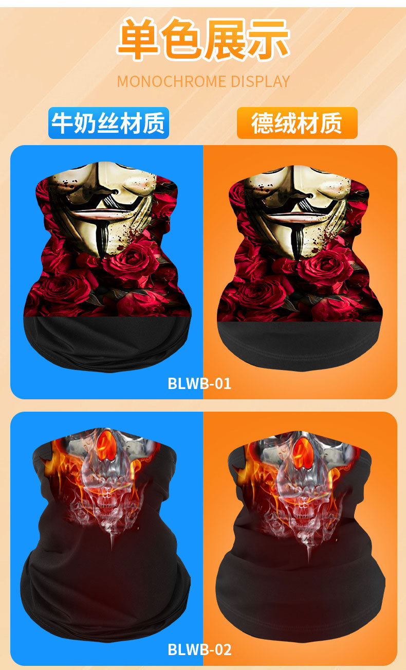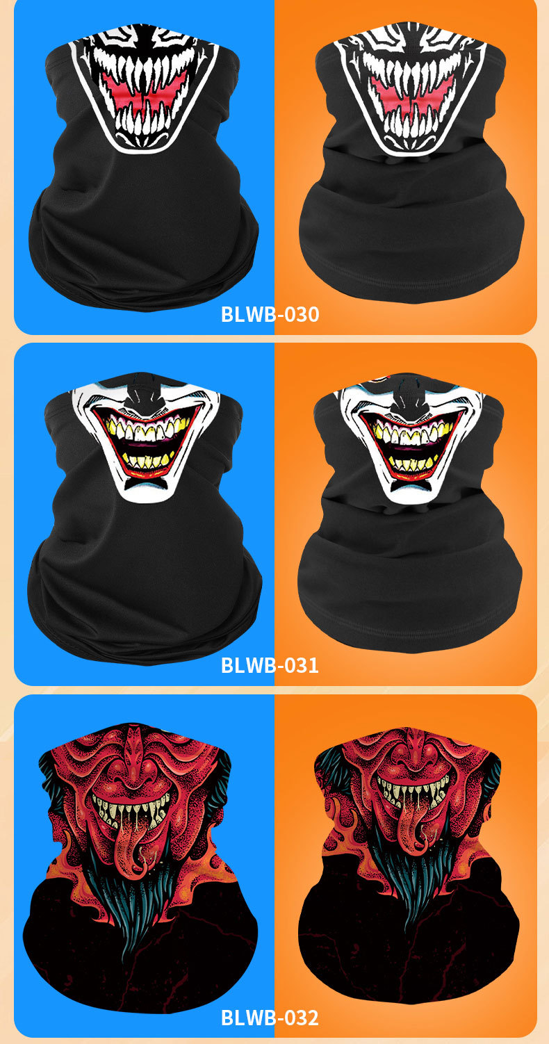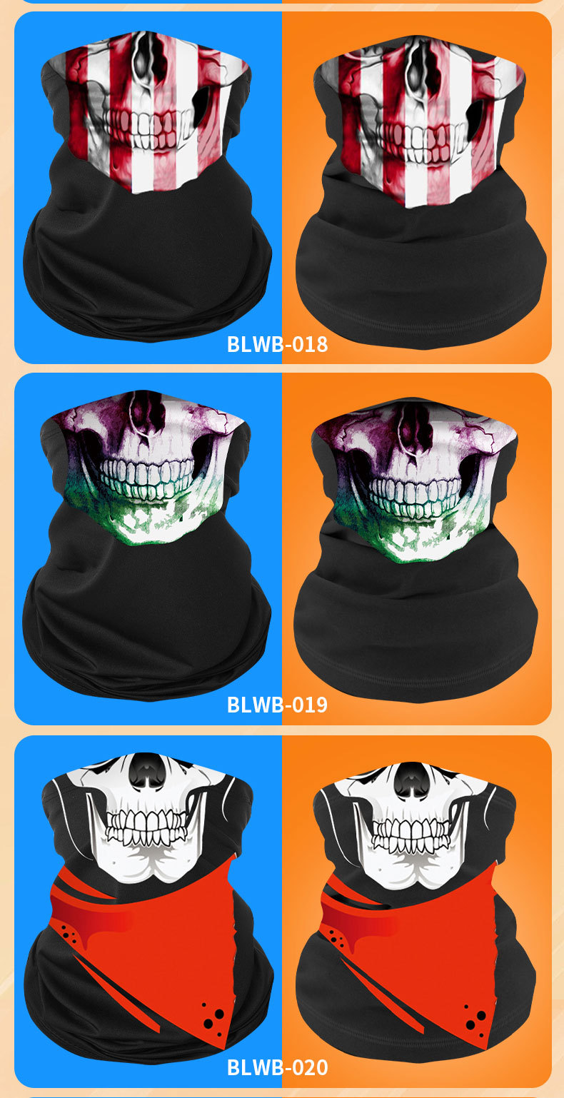 여름 야외용 남성 및 여성용 사이클링 마스크, 반면 해골 프린트, 재미있는 목 커버, 호흡이 편리함, 아이스 실크 자외선 차단 목 스카프