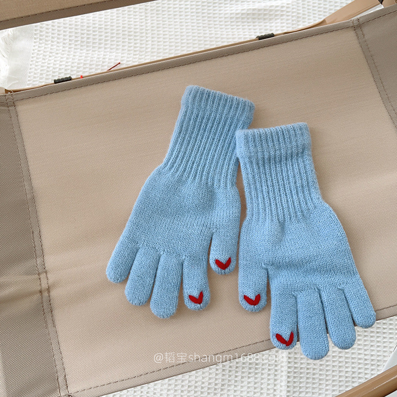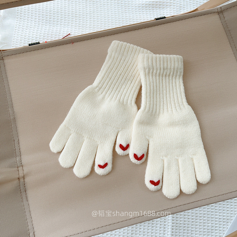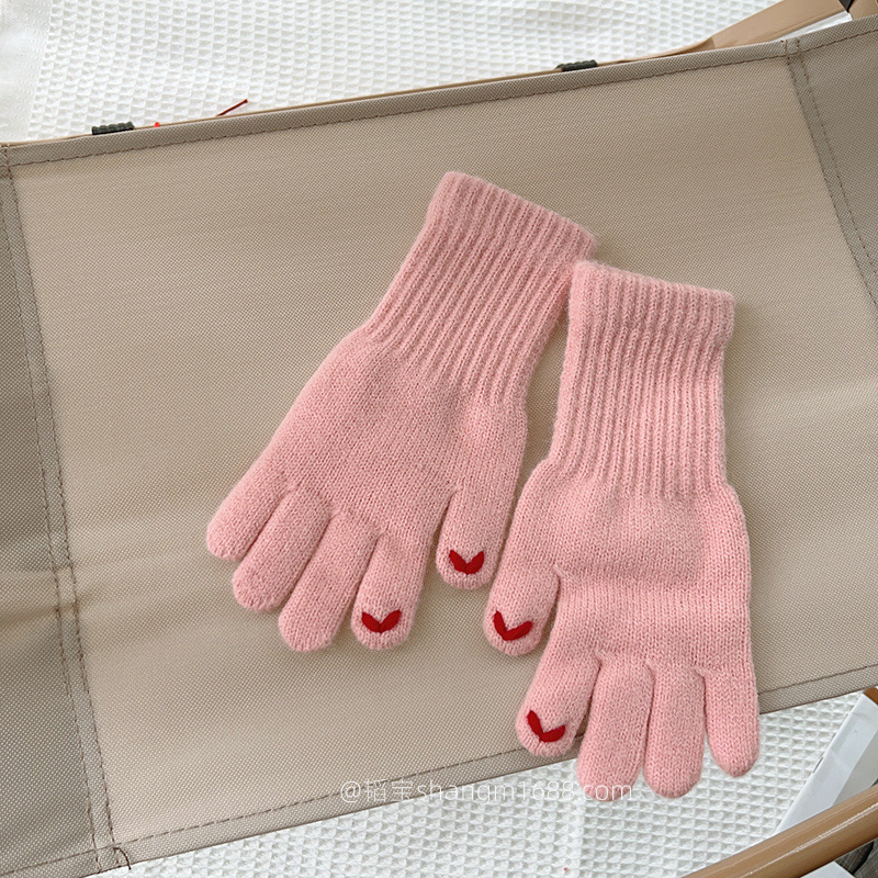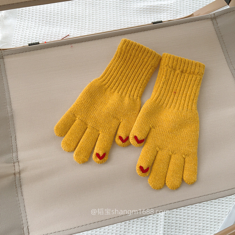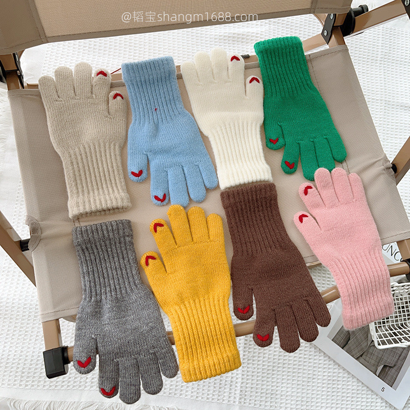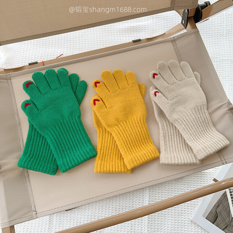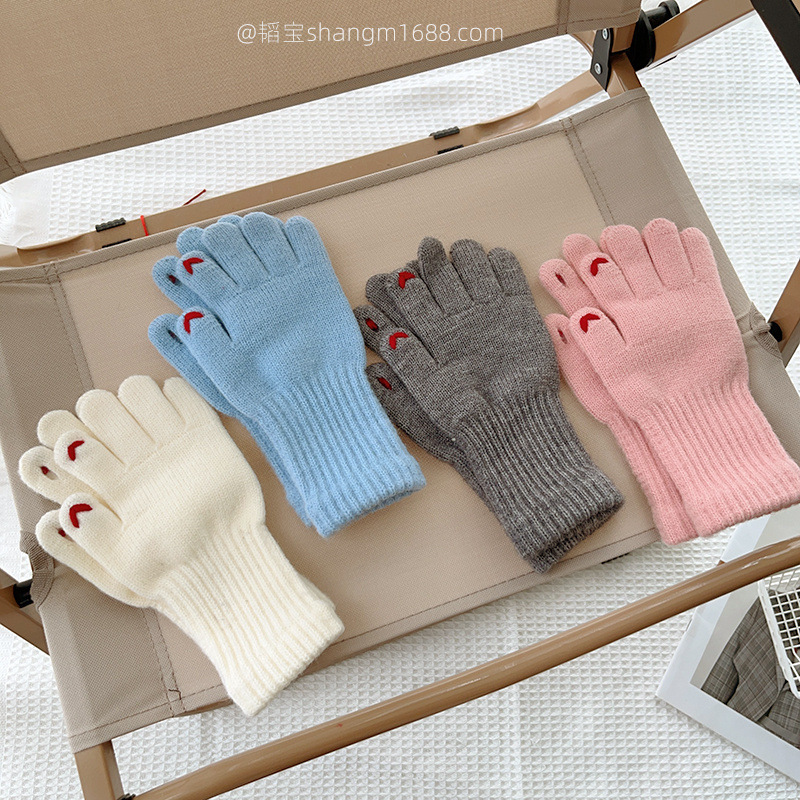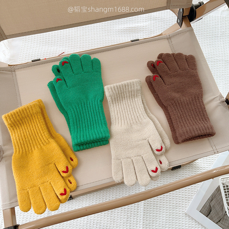 한국 새로운 어린이 장갑 2024 하트 오픈 손가락 터치 스크린 학생 아기 유행 장갑 도매보다 사랑 자수스토어 가기