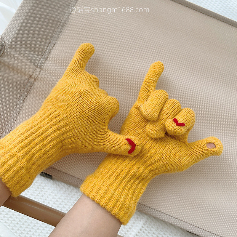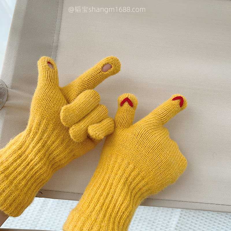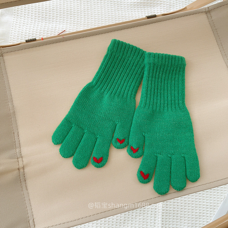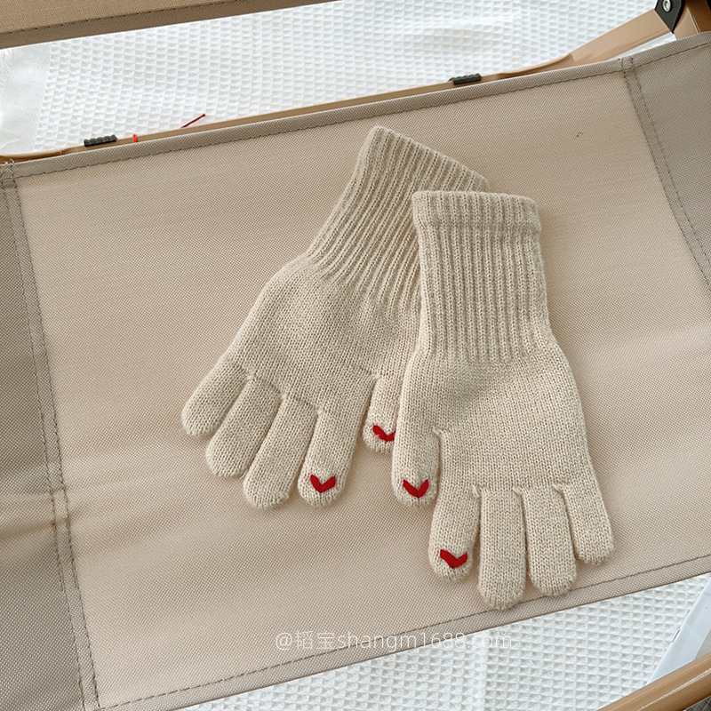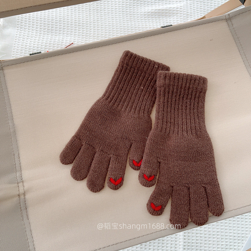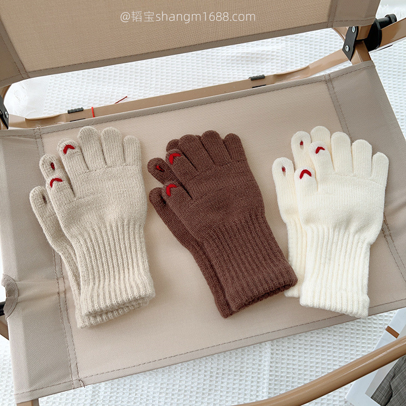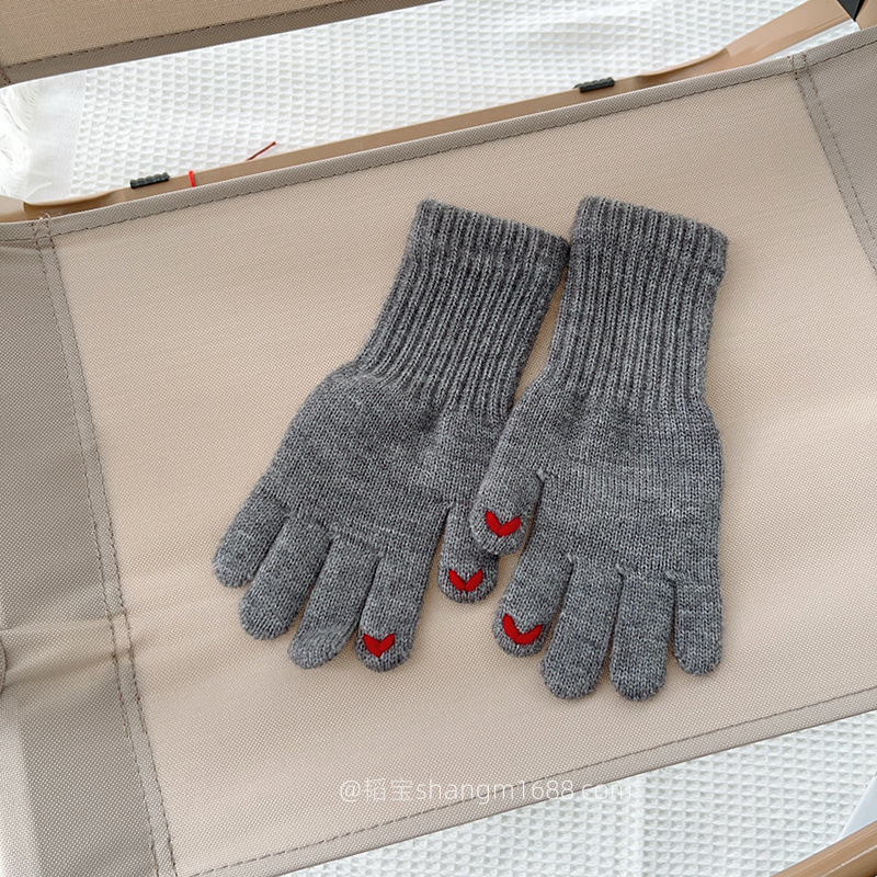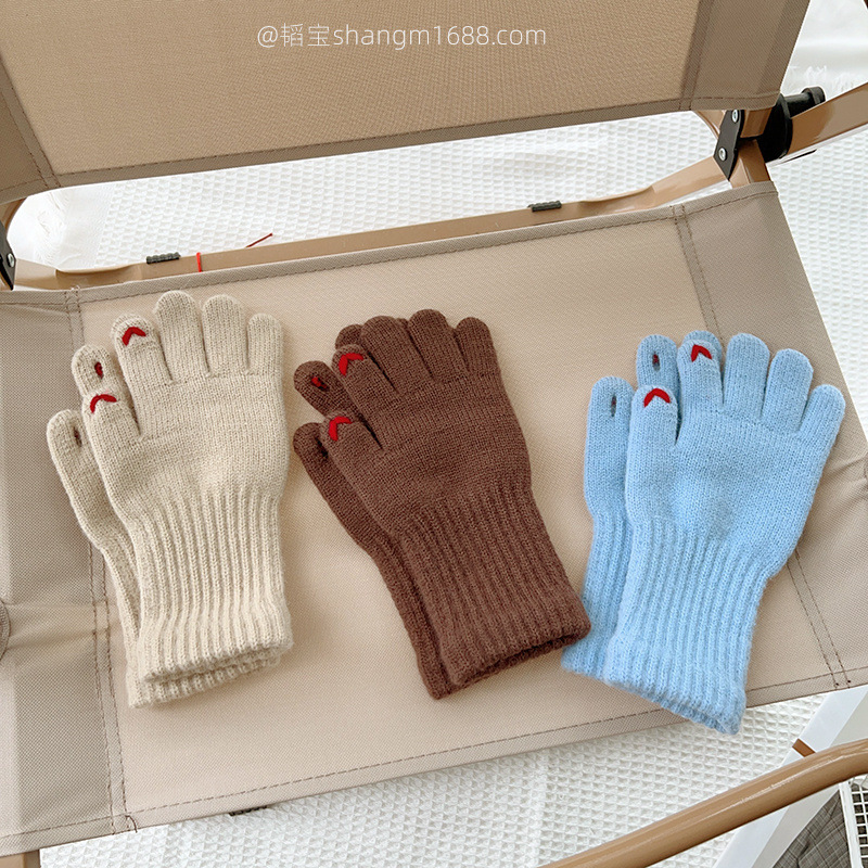 한국 새로운 어린이 장갑 2024 하트 오픈 손가락 터치 스크린 학생 아기 유행 장갑 도매보다 사랑 자수스토어 가기