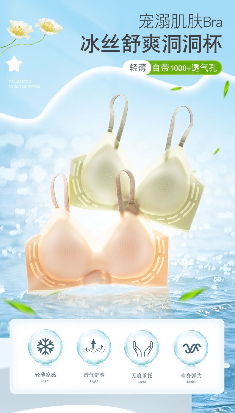 초박형 아이스 실크 비 마킹 속옷 방지 브래지어 푸시 업 속옷 고정 컵 젤리 소프트 지원 브래지어 얇은스토어 가기