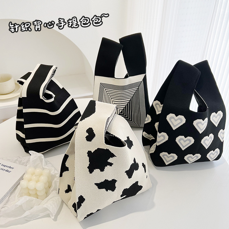 한국 라이트 럭셔리 조끼 가방 캐주얼 니트 핸드백 핸드백 핸드백 체스보드 컬러 콘트라스트 클러치 백스토어 가기