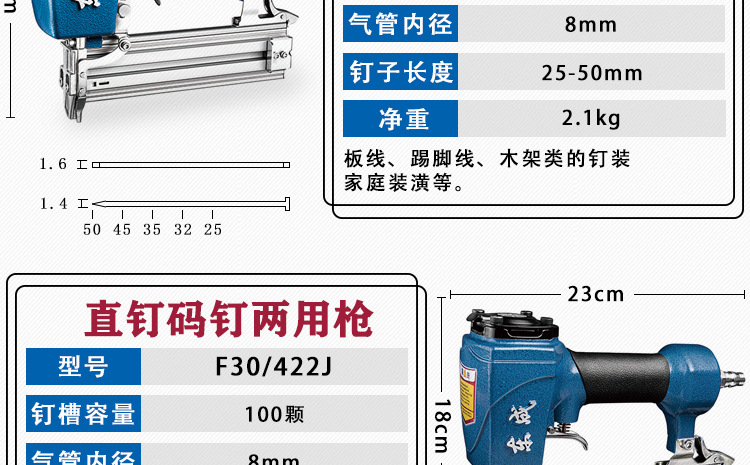 • 스트레이트 네일건 F30(네일 걸림 없음) 공식 규격