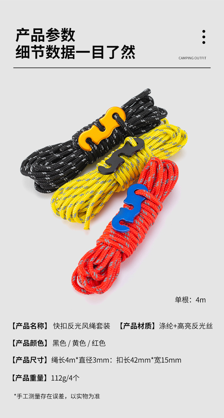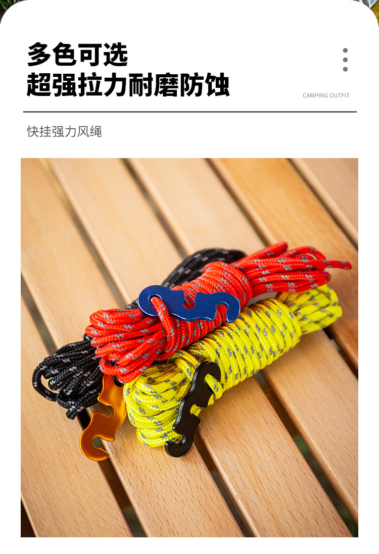 캠핑 텐트 방풍 로프 드로 스트링 빛나는 로프 하이라이트 발광 로프 형광 반사 캐노피 드로 스트링 그라운드 네일 고정스토어 가기