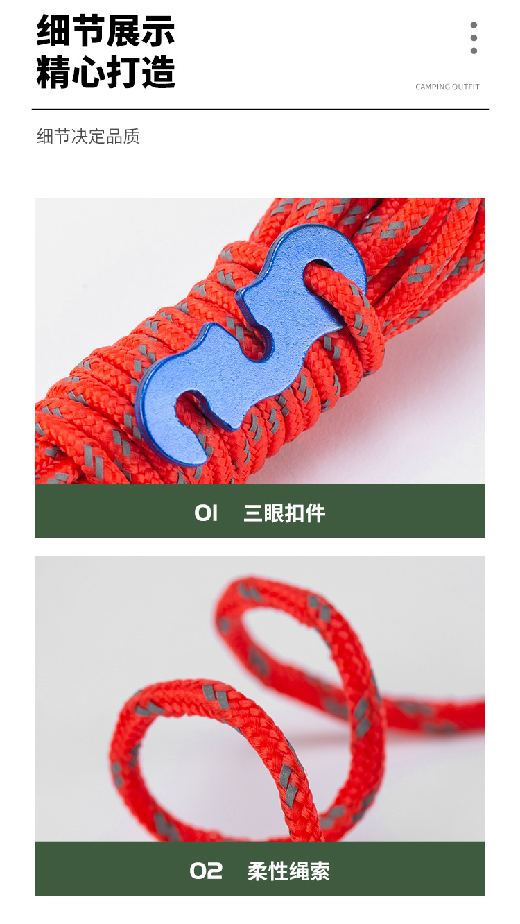 캠핑 텐트 방풍 로프 드로 스트링 빛나는 로프 하이라이트 발광 로프 형광 반사 캐노피 드로 스트링 그라운드 네일 고정