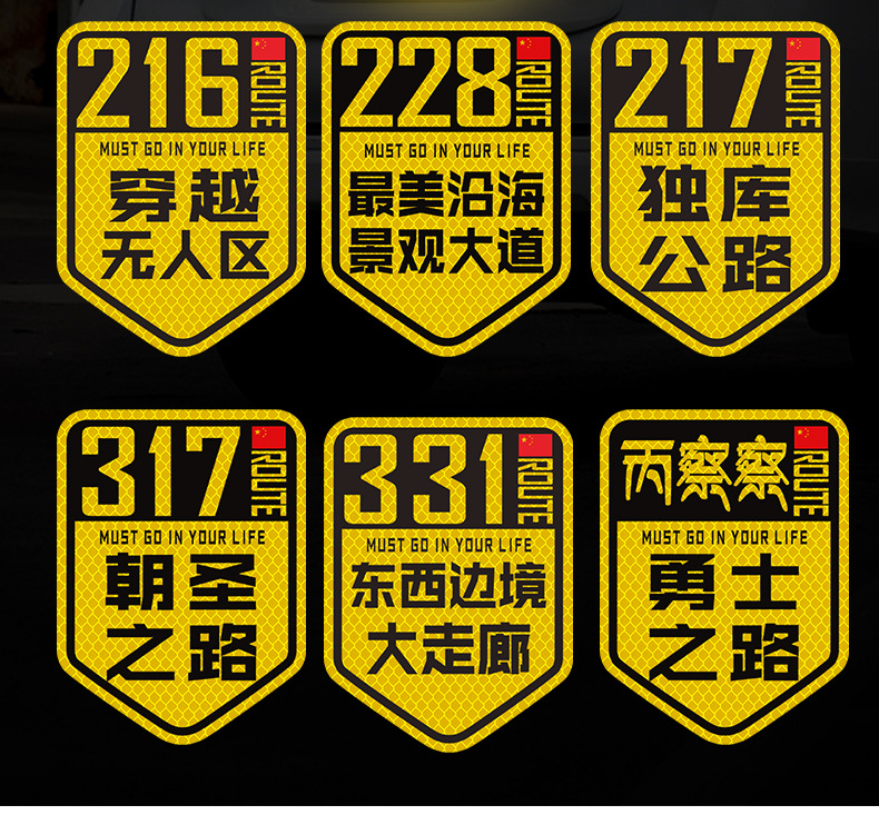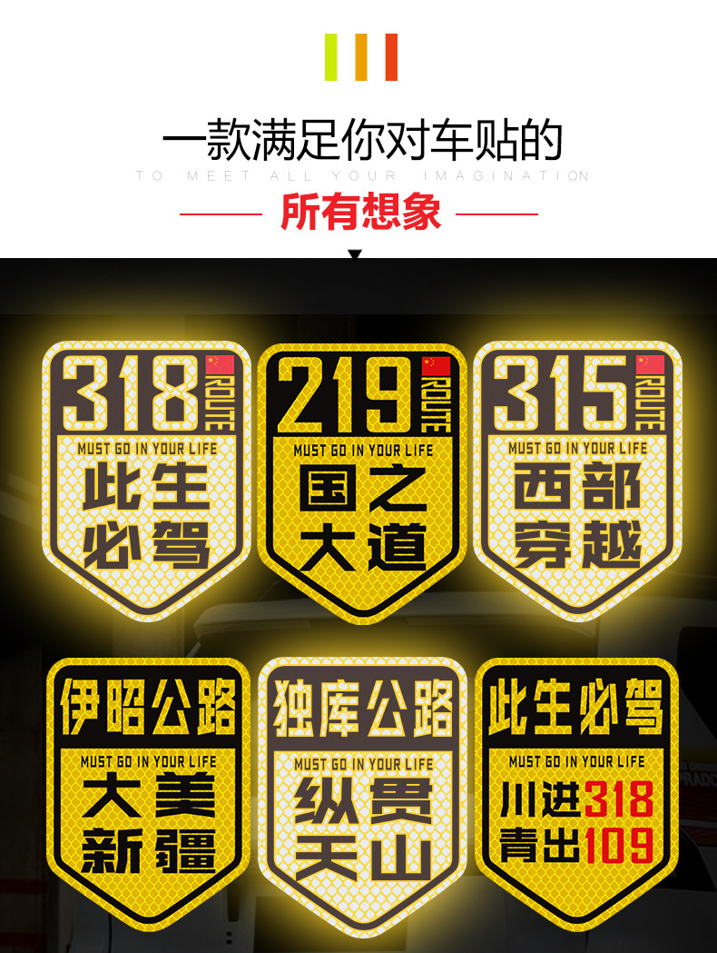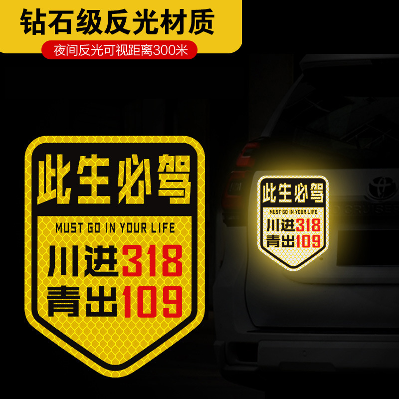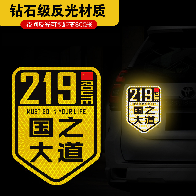 국도 219 Guozhi Avenue 두쿠 고속도로 사천-티베트 318 사천-티베트 라인 자동차 스티커 강한 반사 자기 자동차 스티커