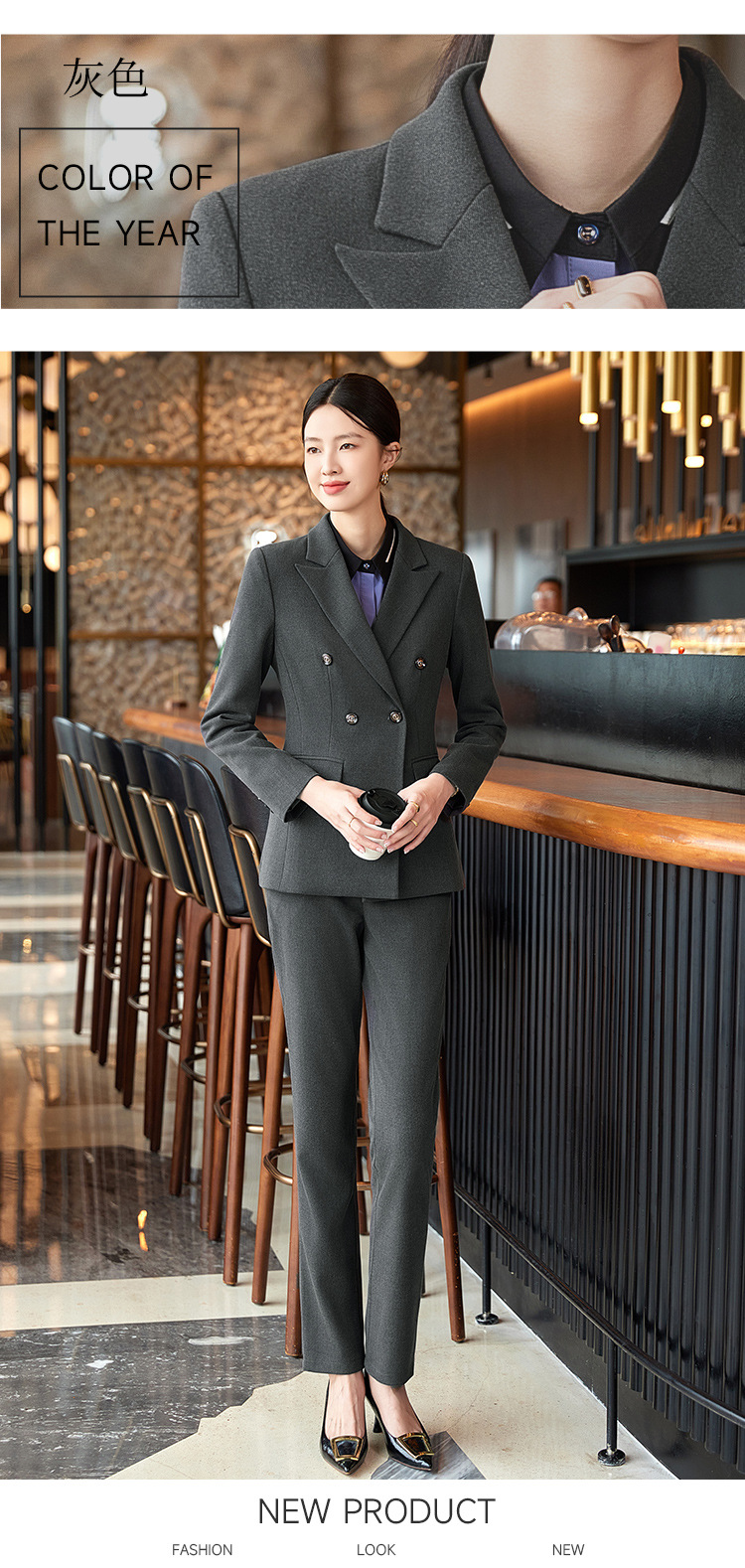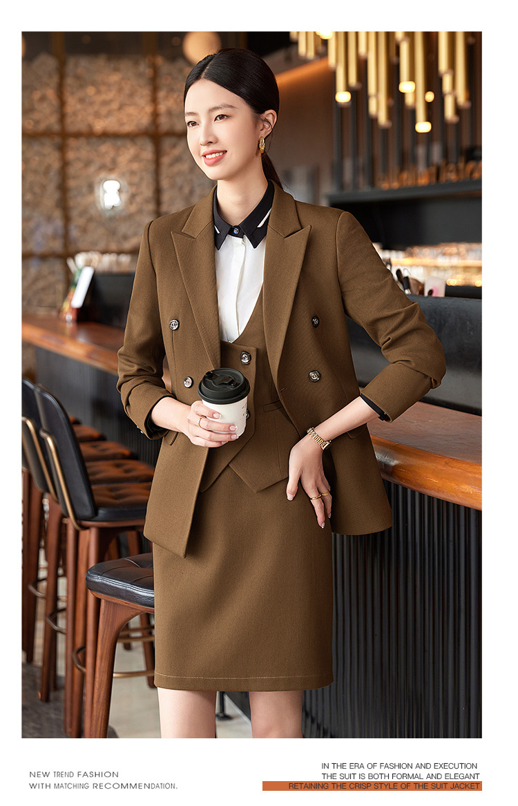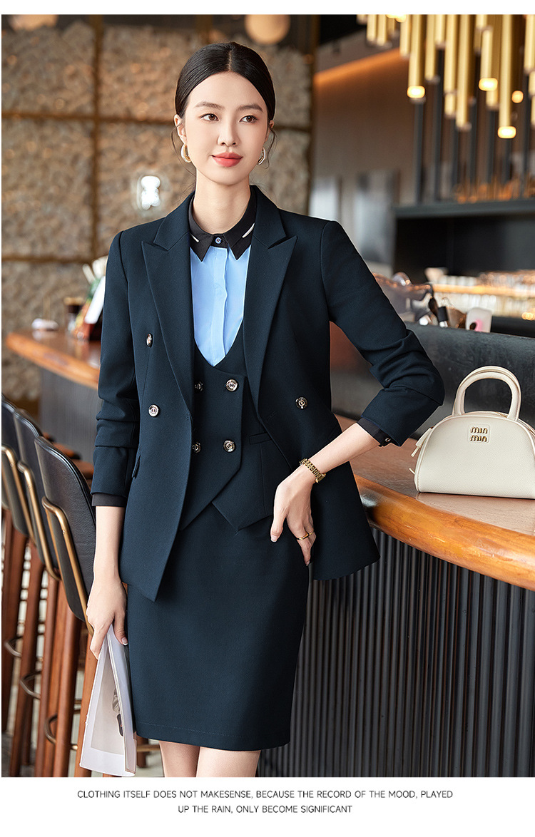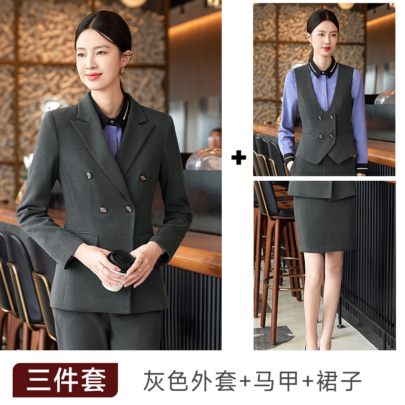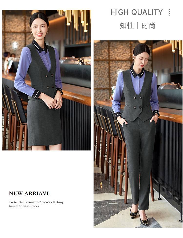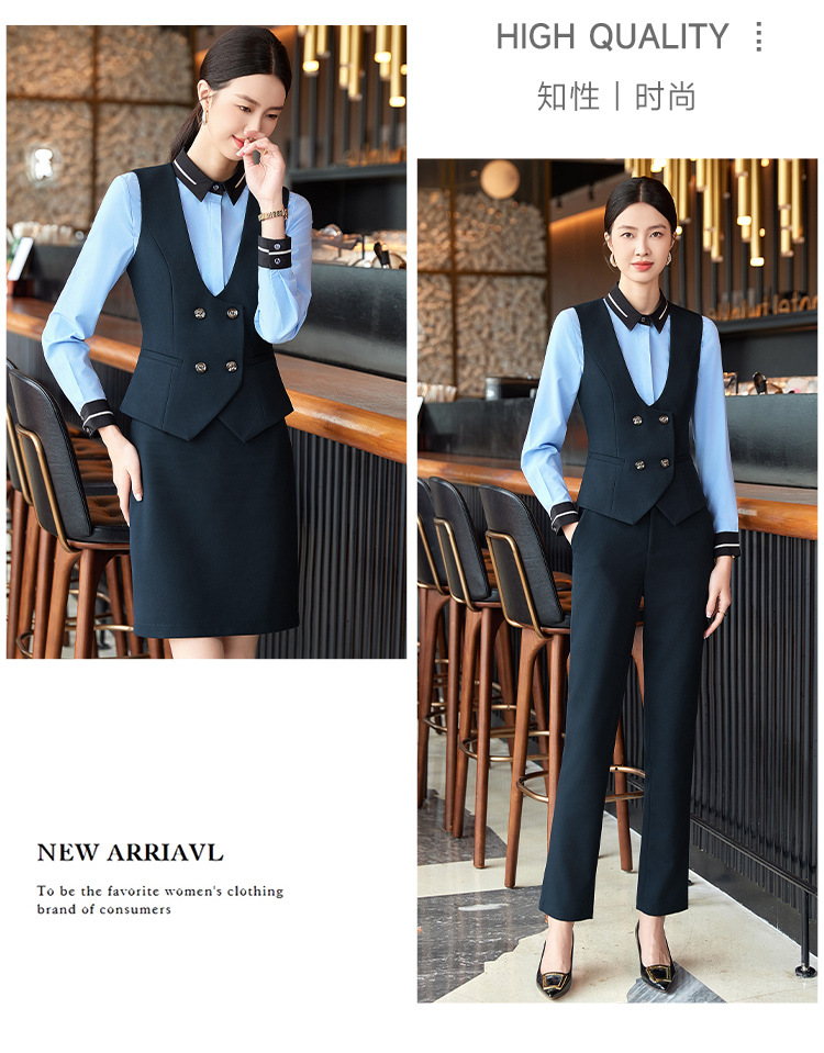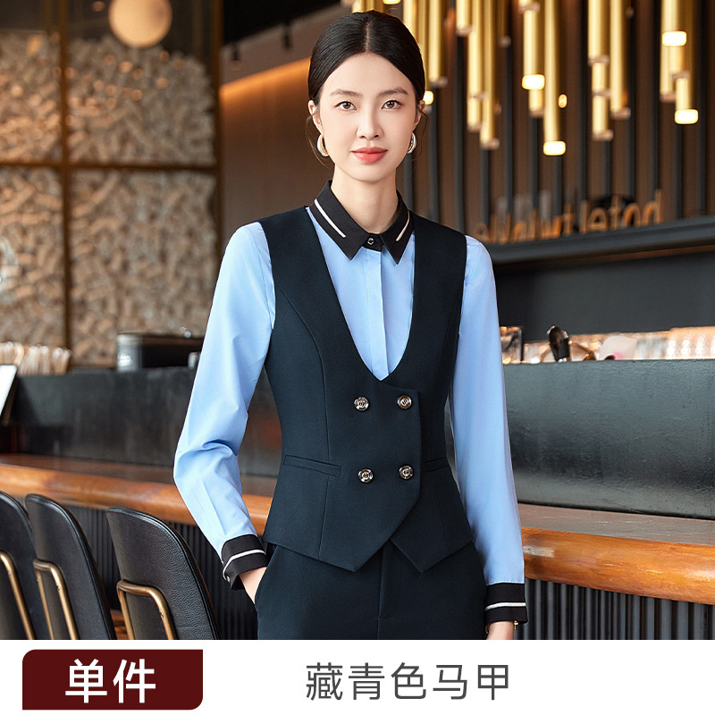 비즈니스 착용 여성 조끼 미용사 세트 5 종 세트 가을과 겨울 긴 소매 세트 호텔 프론트 데스크 작업 옷 바지스토어 가기