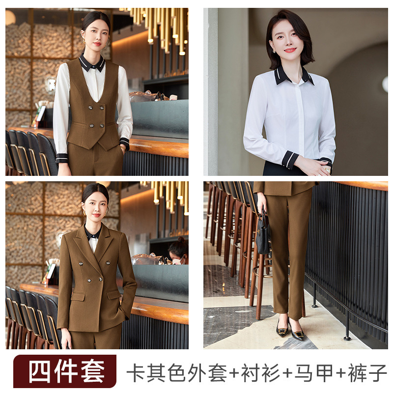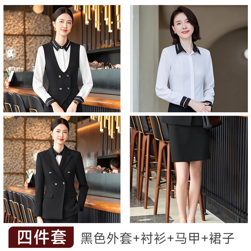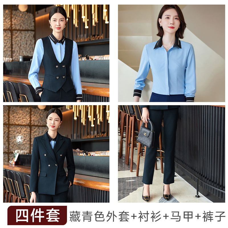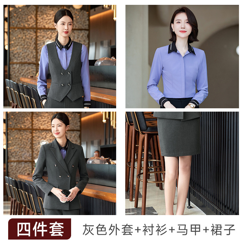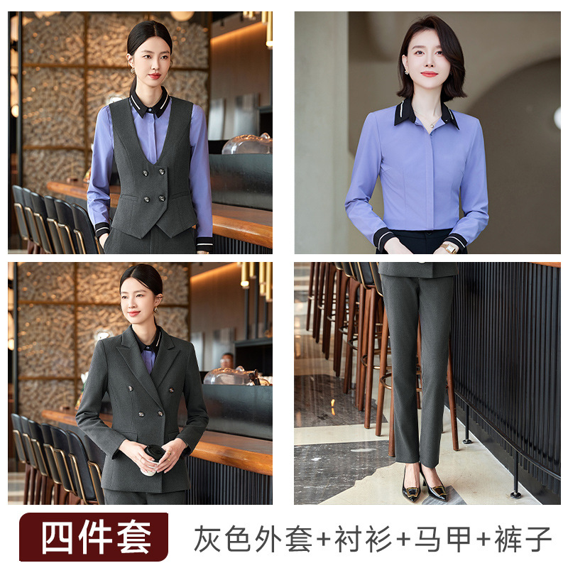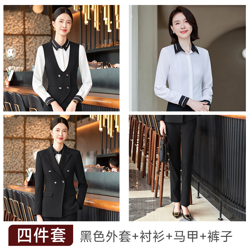 비즈니스 착용 여성 조끼 미용사 세트 5 종 세트 가을과 겨울 긴 소매 세트 호텔 프론트 데스크 작업 옷 바지