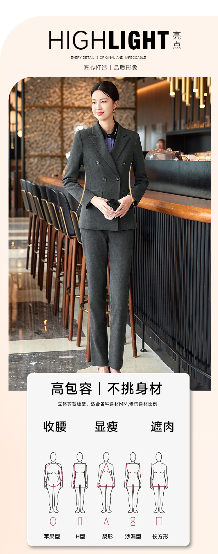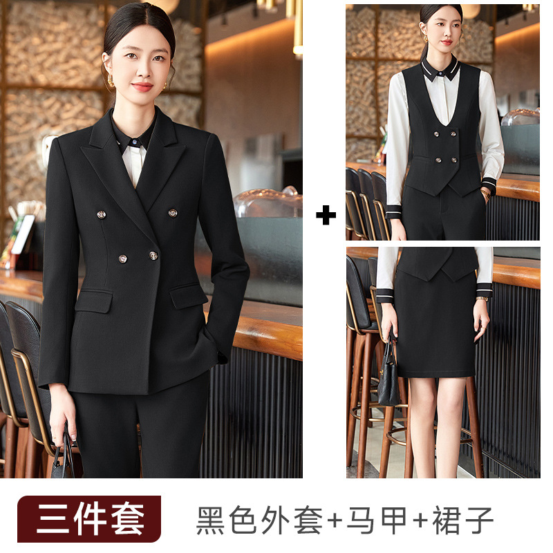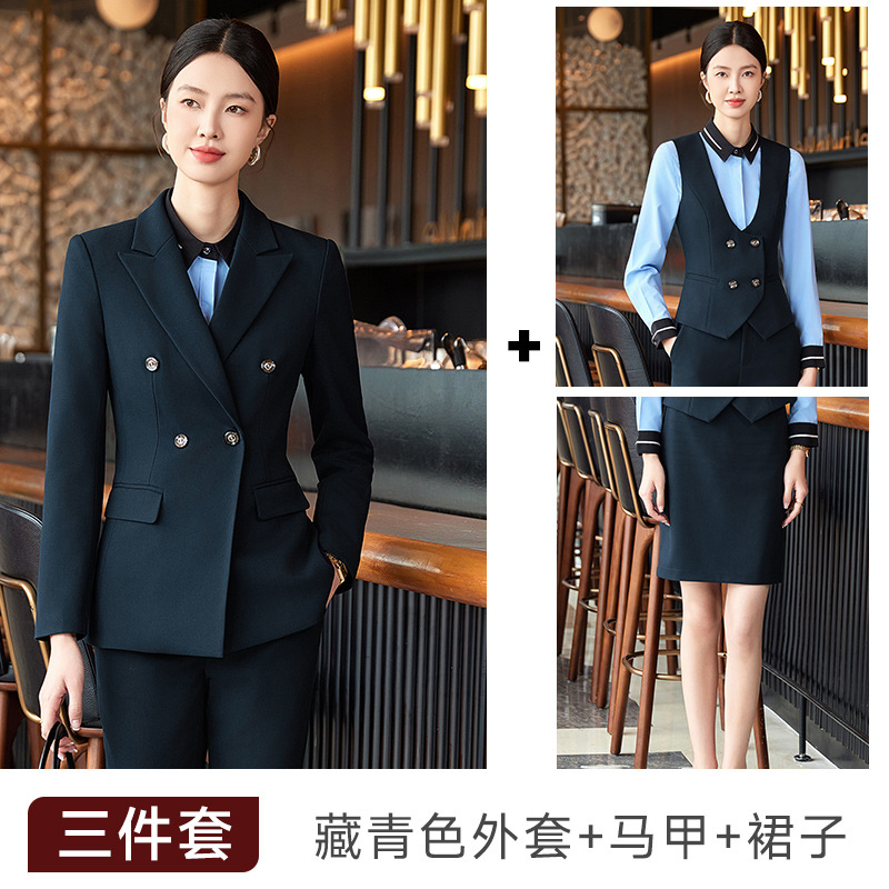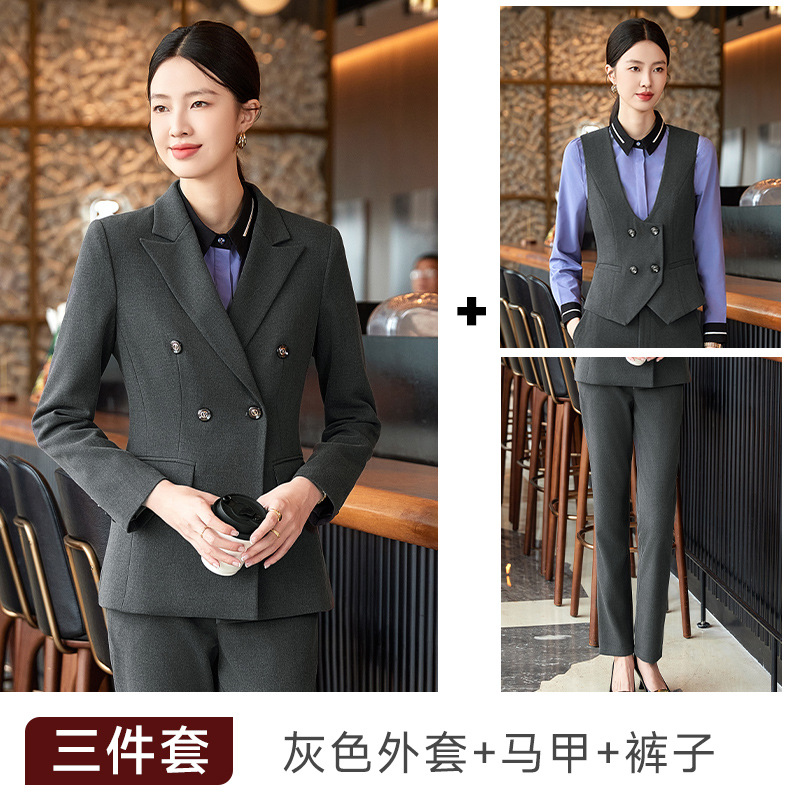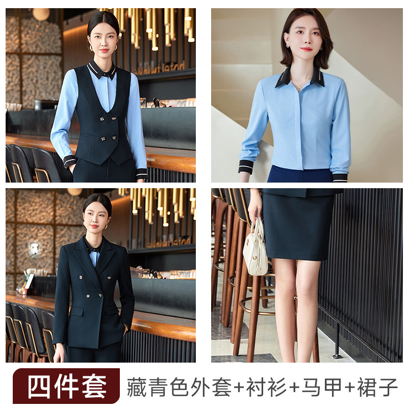 비즈니스 착용 여성 조끼 미용사 세트 5 종 세트 가을과 겨울 긴 소매 세트 호텔 프론트 데스크 작업 옷 바지