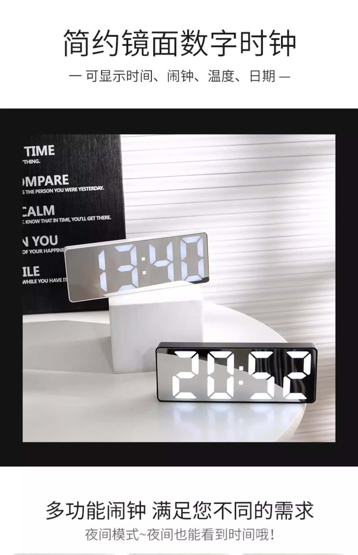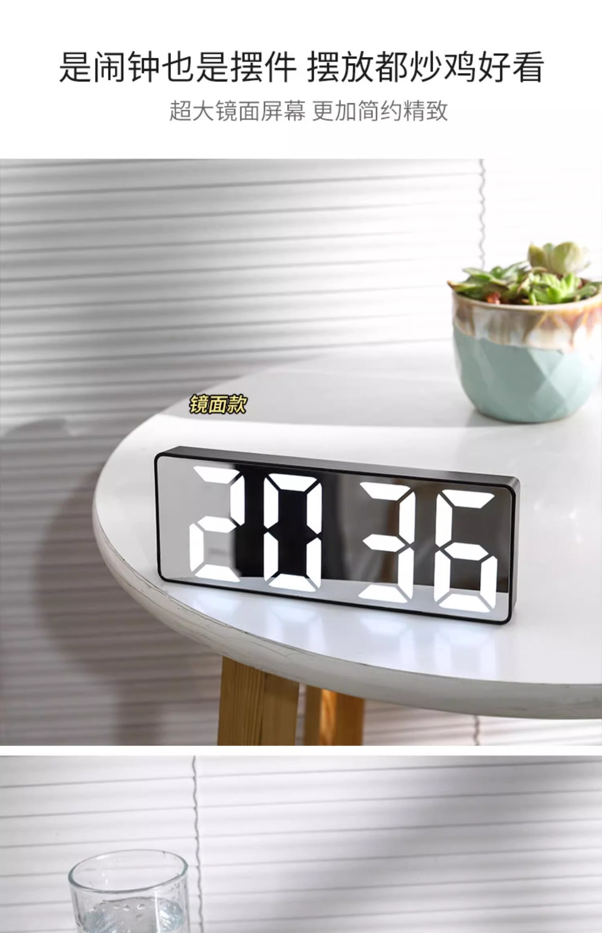 빛나는 거울 시계 ins 데스크탑 시계 시간 시계 테이블 장식품 led 디지털 디스플레이 전자 알람 시계스토어 가기
