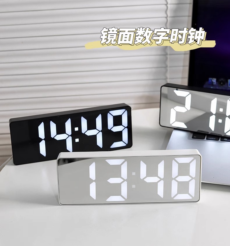 빛나는 거울 시계 ins 데스크탑 시계 시간 시계 테이블 장식품 led 디지털 디스플레이 전자 알람 시계