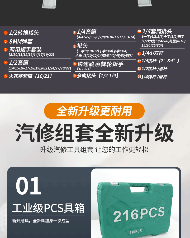 216 조각 세트 크롬 바나듐 강철 다기능 유지 보수 가구 자동 수리 래칫 렌치 소켓 세트 PC 조합 도구 세트