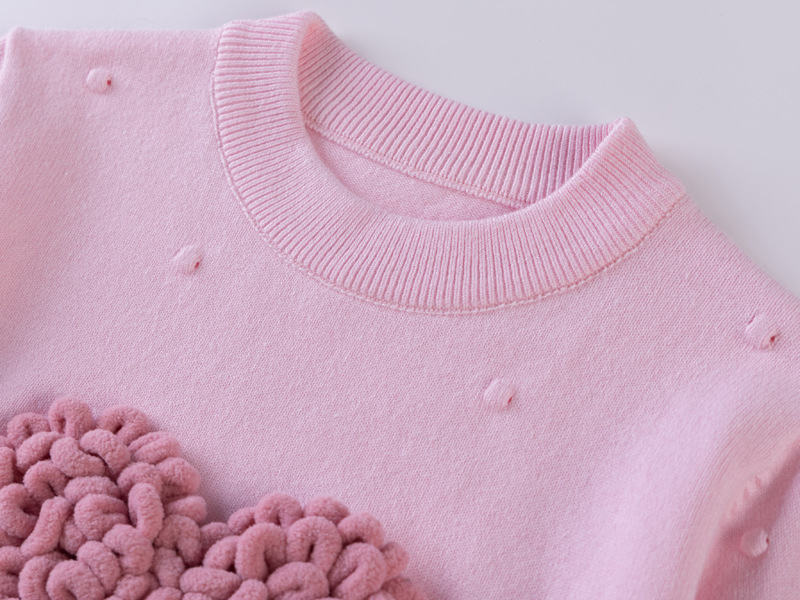 한국식 아동복 여아용 타월 소재 사랑 패딩 자수 풀오버 스웨터 트렌디 팬 중다 어린이 싱글 레이어 코튼 니트 스웨터스토어 가기