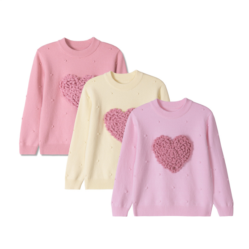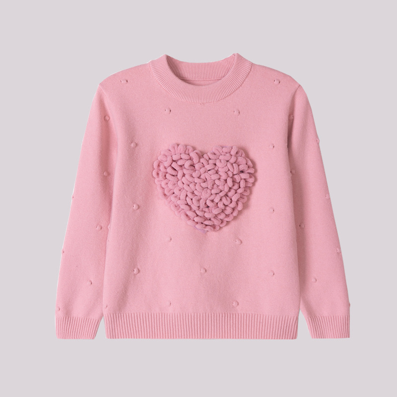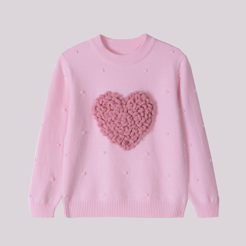 한국식 아동복 여아용 타월 소재 사랑 패딩 자수 풀오버 스웨터 트렌디 팬 중다 어린이 싱글 레이어 코튼 니트 스웨터