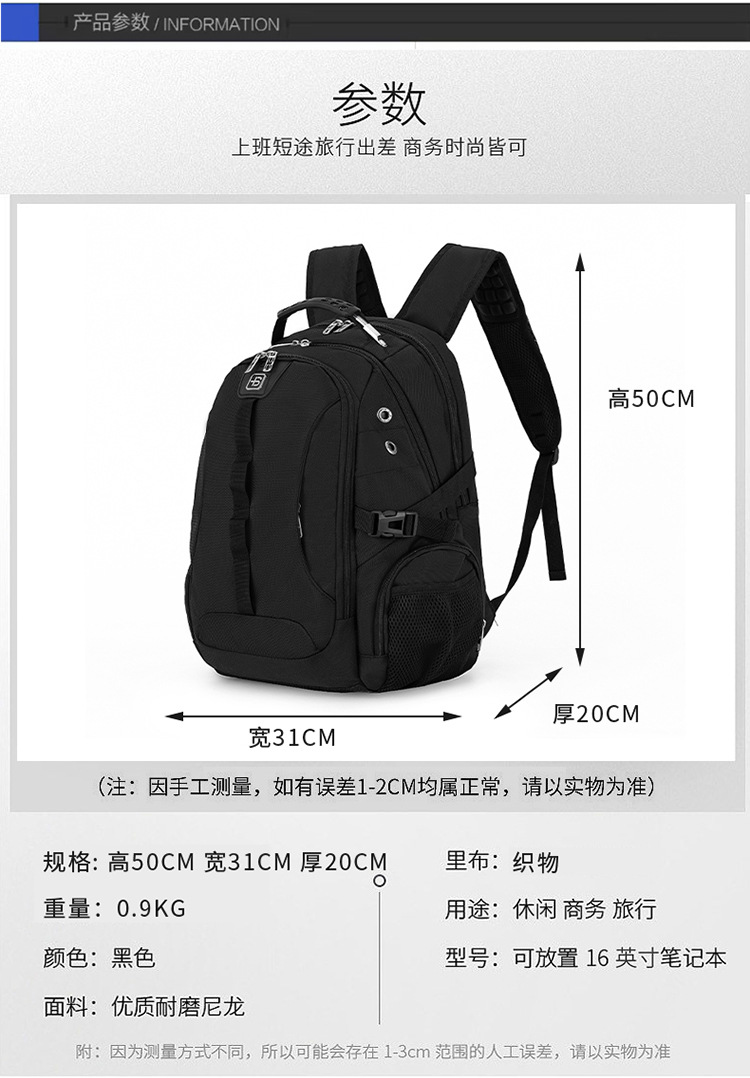 대용량 캐주얼 여행 배낭 남성 대학생 스쿨 백 간단한 비즈니스 여행 컴퓨터 배낭스토어 가기