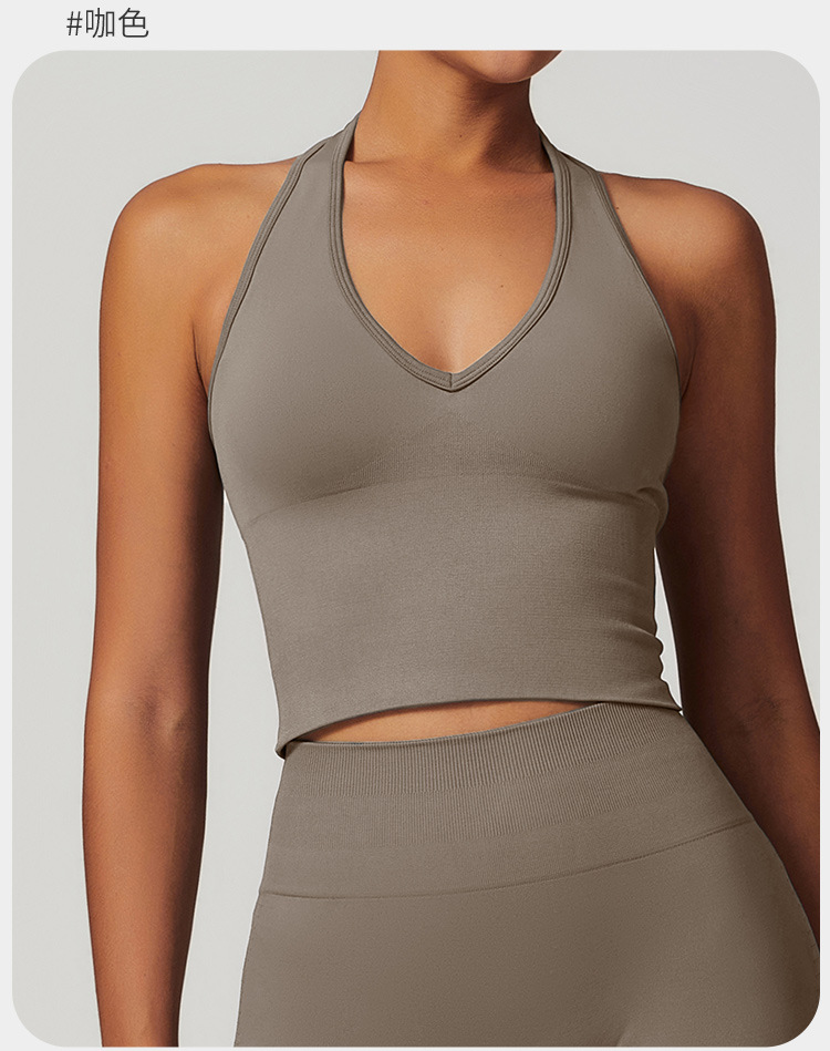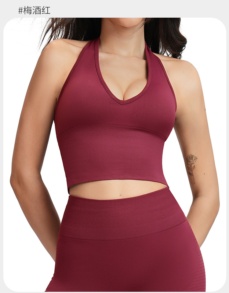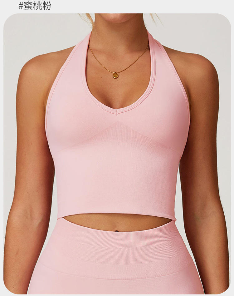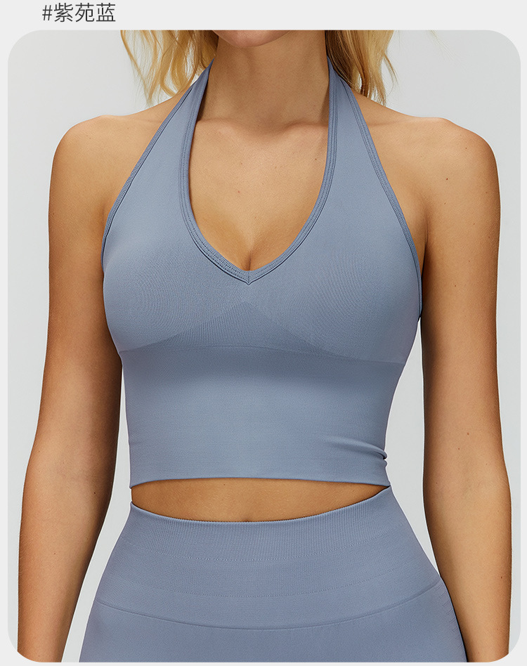 통기성 교수형 목 뒤로 요가 브래지어 유럽과 미국의 원활한 스포츠 속옷 여성의 여름 충격 방지 야외 피트니스 탑 7725스토어 가기