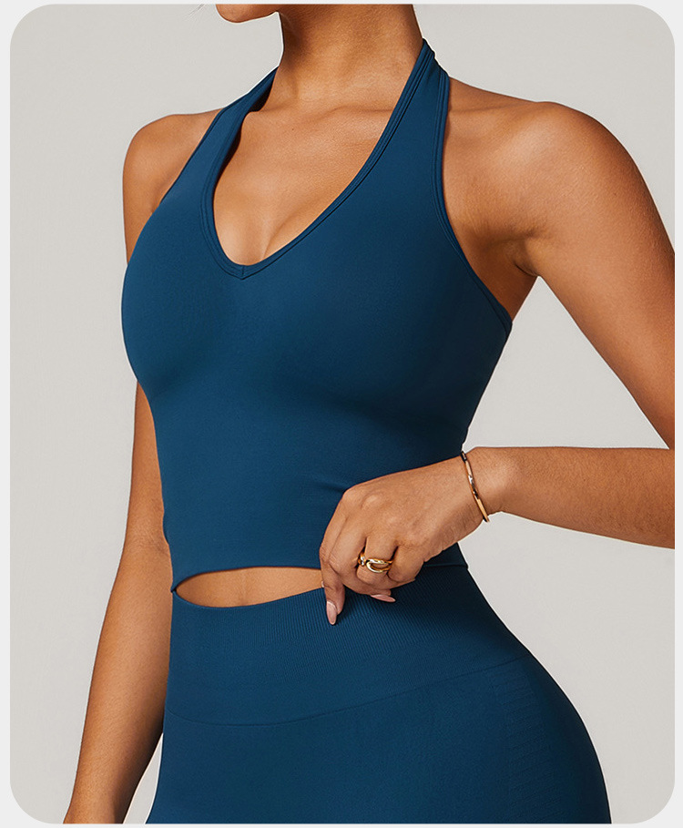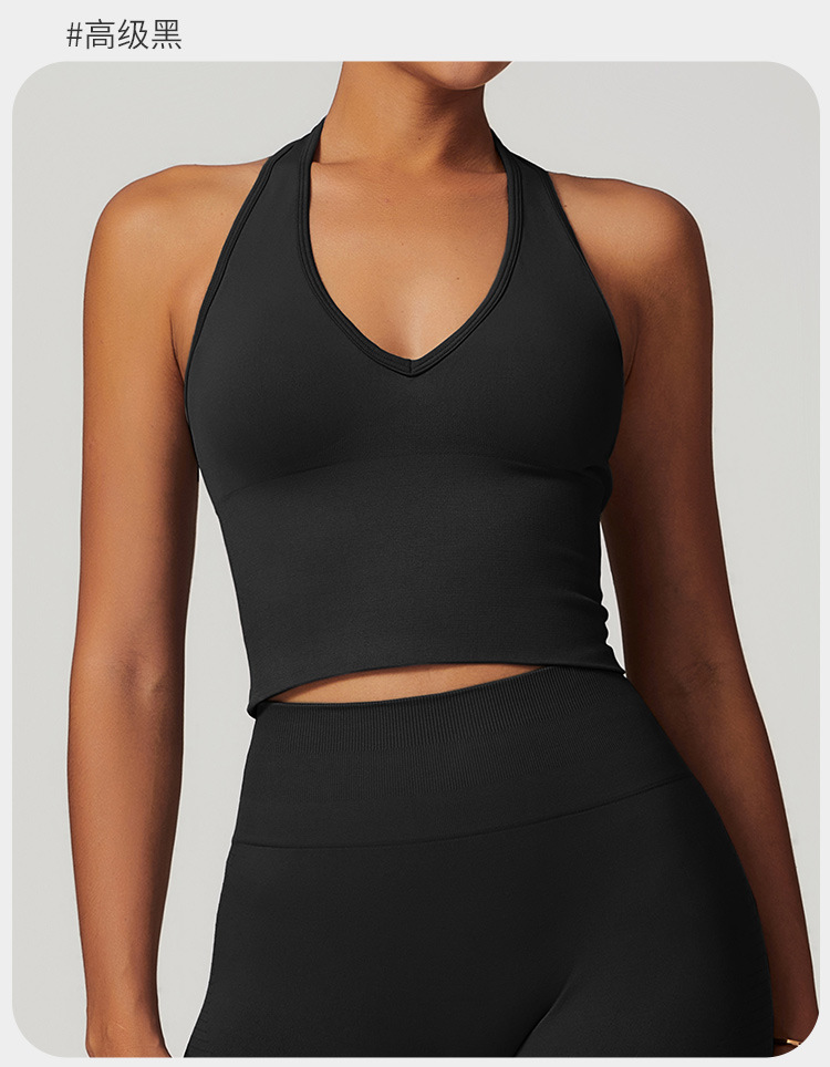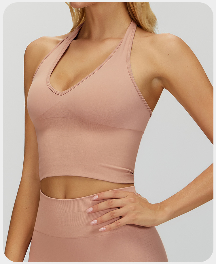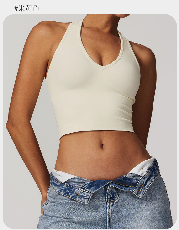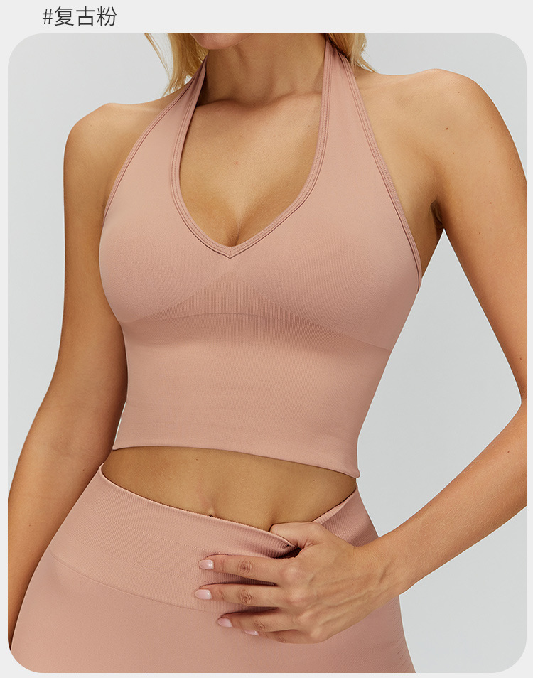 통기성 교수형 목 뒤로 요가 브래지어 유럽과 미국의 원활한 스포츠 속옷 여성의 여름 충격 방지 야외 피트니스 탑 7725스토어 가기
