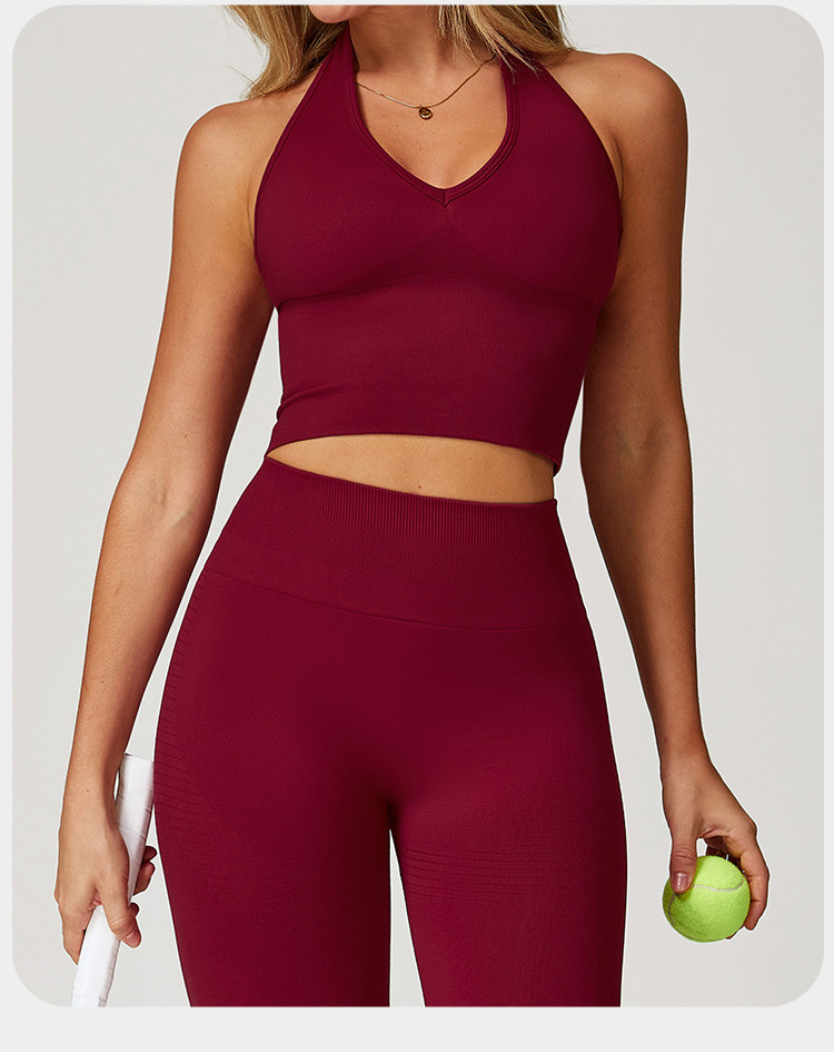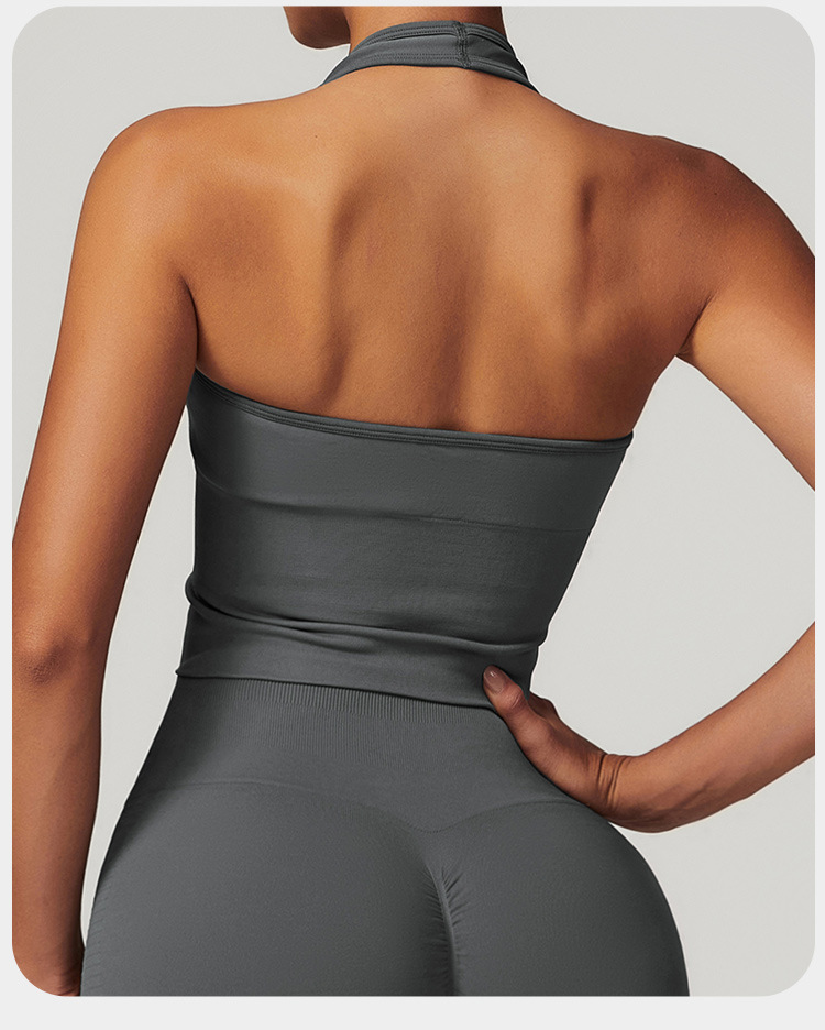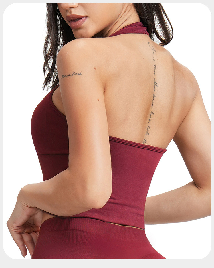 통기성 교수형 목 뒤로 요가 브래지어 유럽과 미국의 원활한 스포츠 속옷 여성의 여름 충격 방지 야외 피트니스 탑 7725