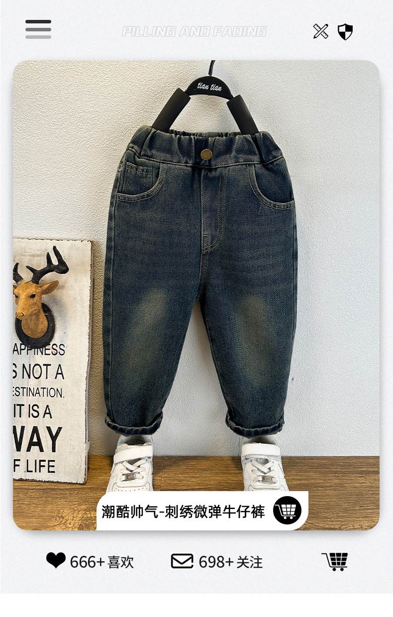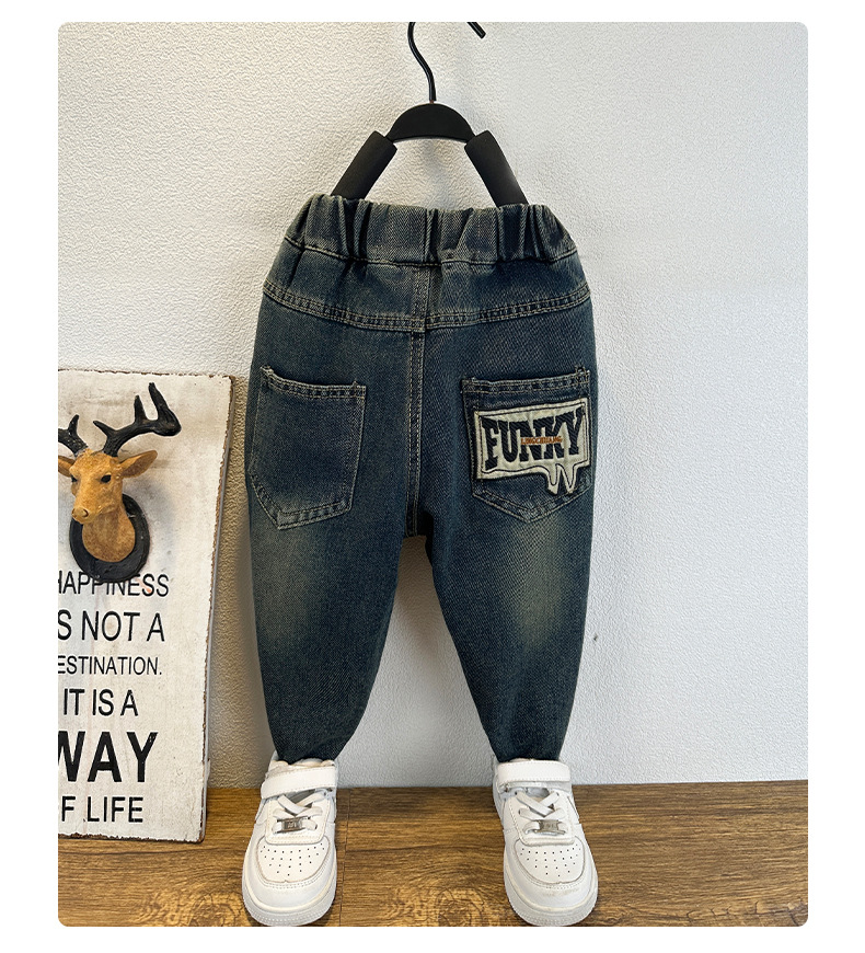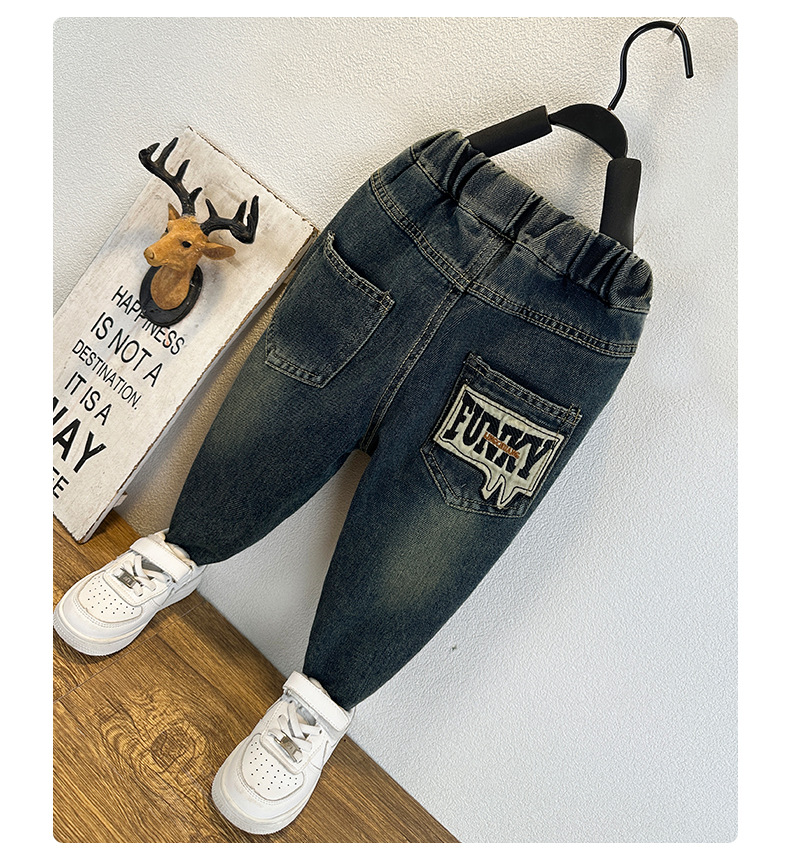 남아용 레터링 캐주얼 데님 팬츠 일본 스타일 봄 가을 유아 남아 자수 데님 바지 수출용 아동 바지스토어 가기