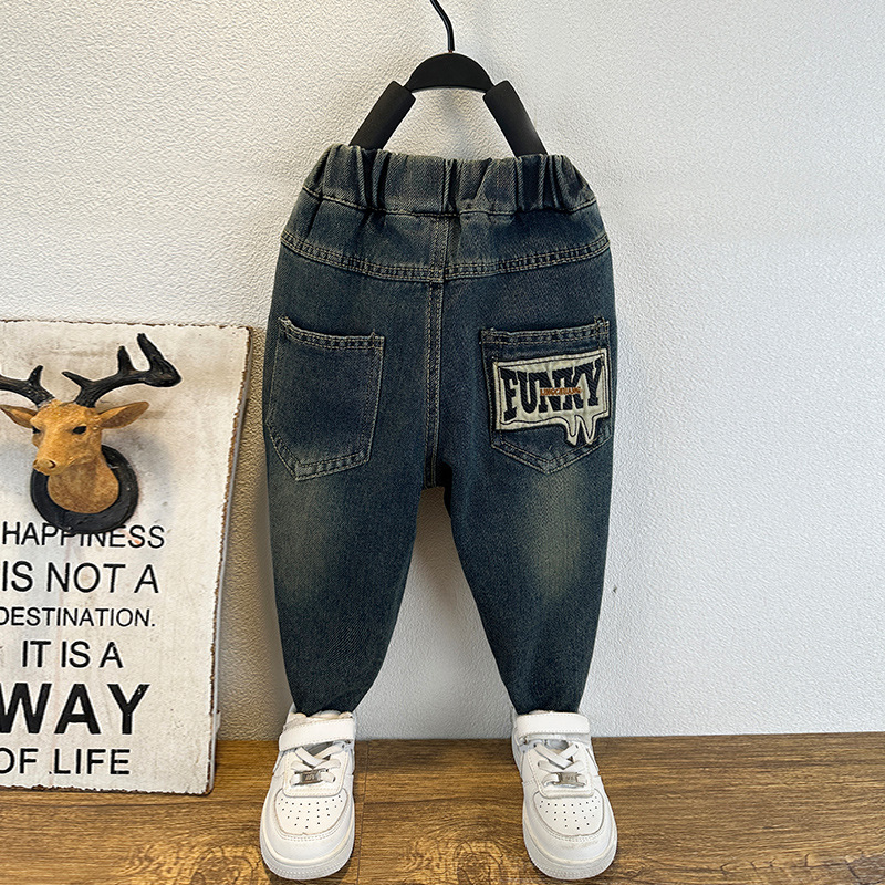 남아용 레터링 캐주얼 데님 팬츠 일본 스타일 봄 가을 유아 남아 자수 데님 바지 수출용 아동 바지