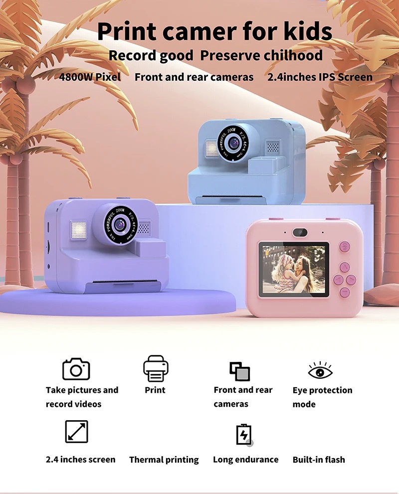 귀여운 미니 만화 어린이 장난감 선물 대머리 디지털 카메라 하이 퀄리티 듀얼 카메라 열 프린터