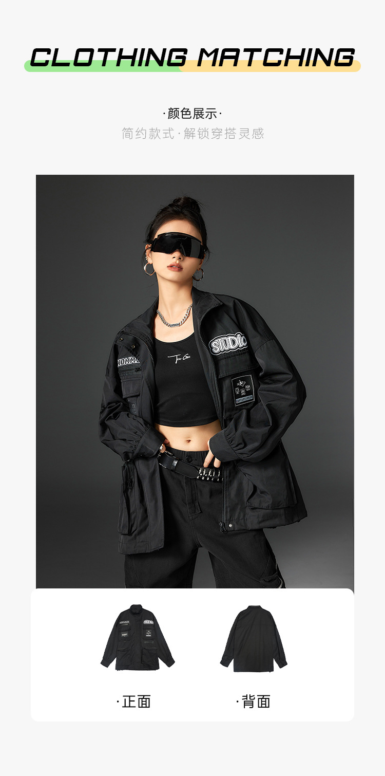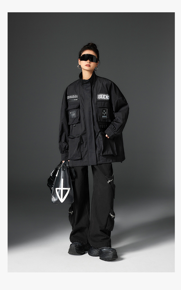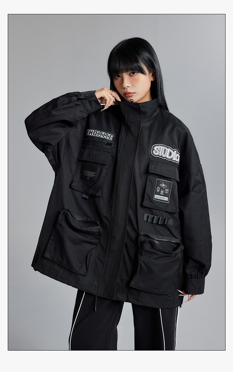 투오구 트렌디 브랜드 커플용 루즈핏 캐주얼 윈드브레이커 가을 겨울 슬림핏 스탠드 칼라 재킷 작업복 재킷 여성용스토어 가기