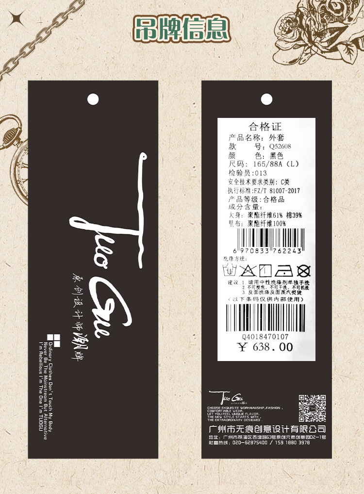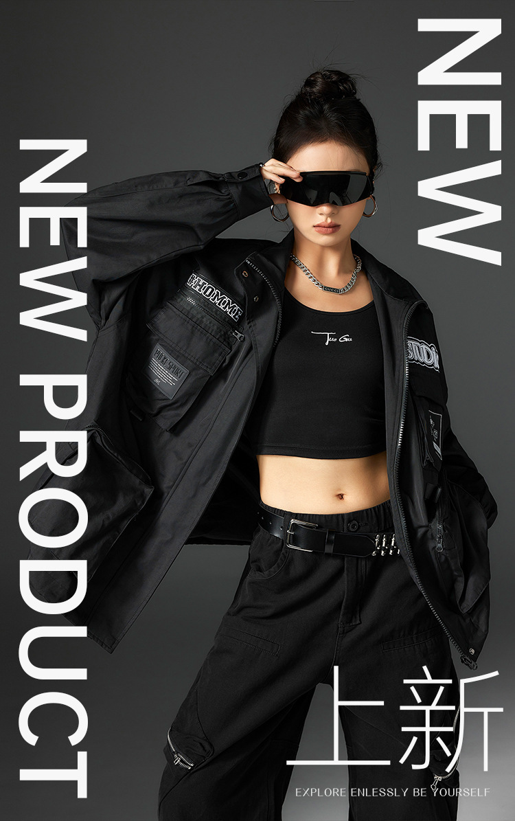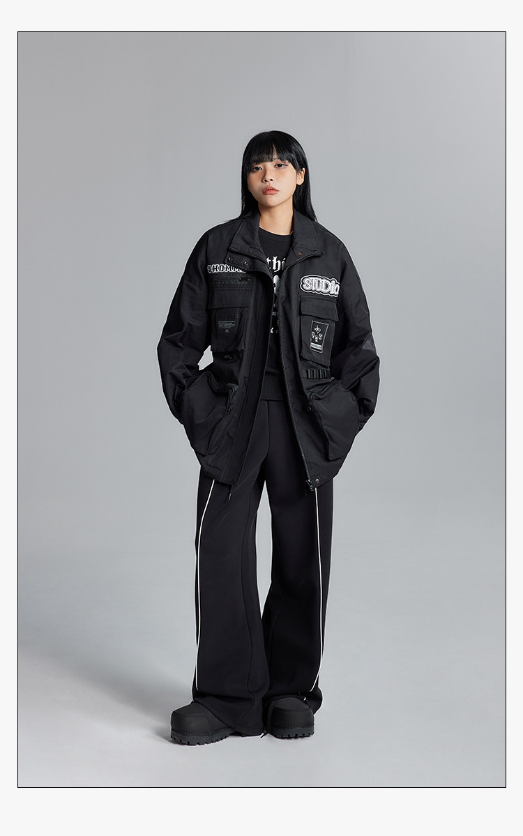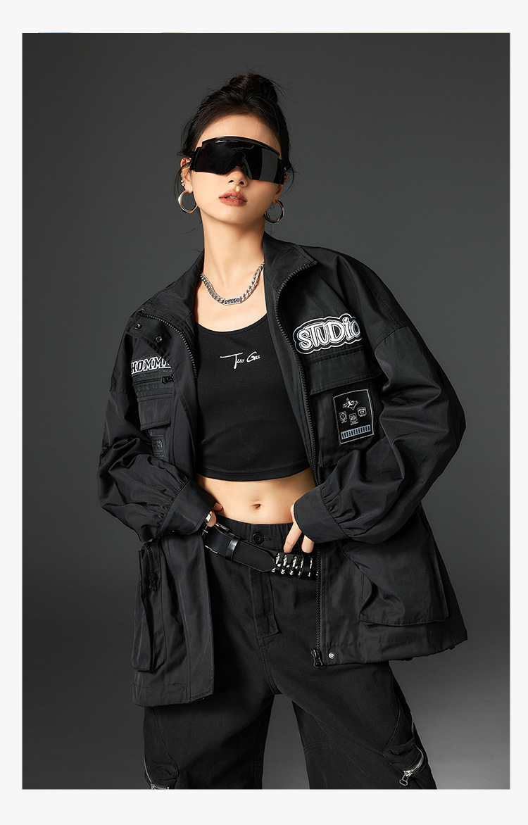 투오구 트렌디 브랜드 커플용 루즈핏 캐주얼 윈드브레이커 가을 겨울 슬림핏 스탠드 칼라 재킷 작업복 재킷 여성용스토어 가기