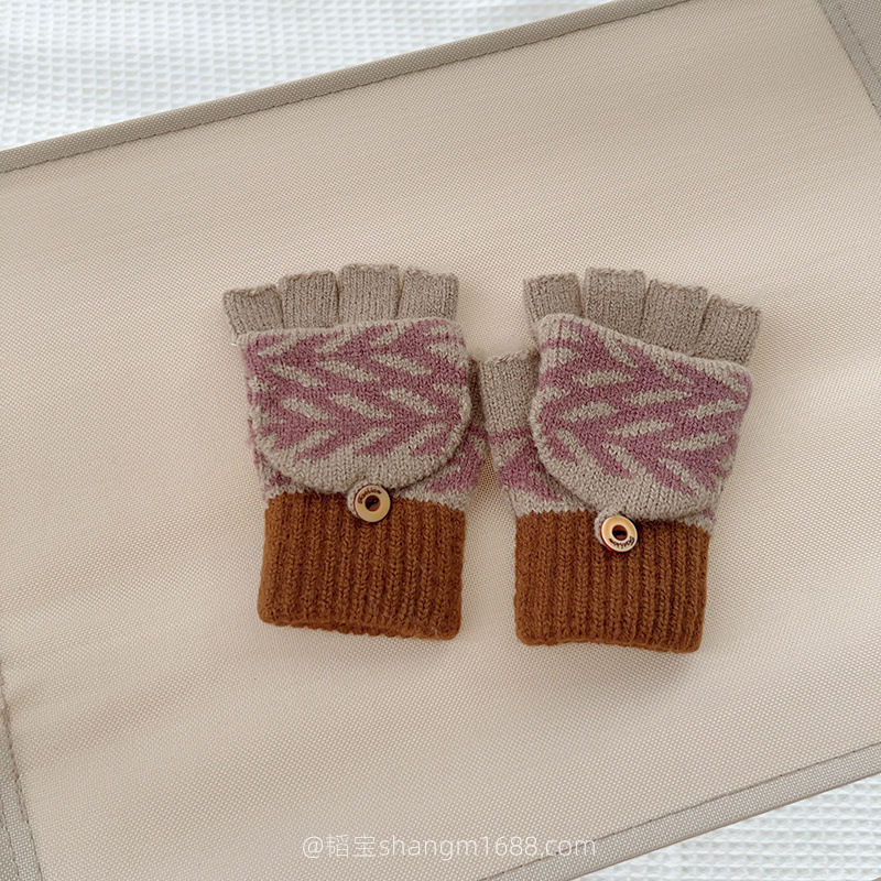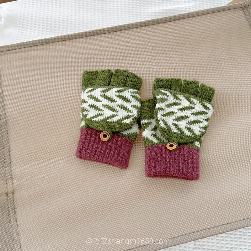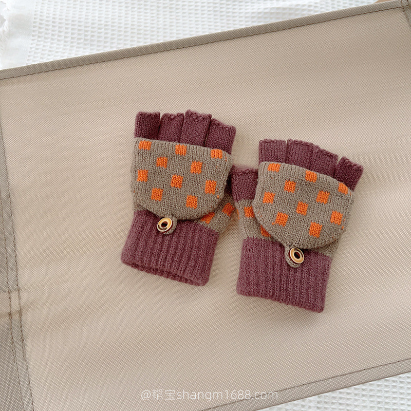 한국의 새로운 어린이 가을 겨울 장갑 소년 소녀 용 플립 5 손가락 장갑 따뜻한 학교 반손가락 장갑