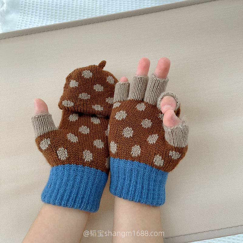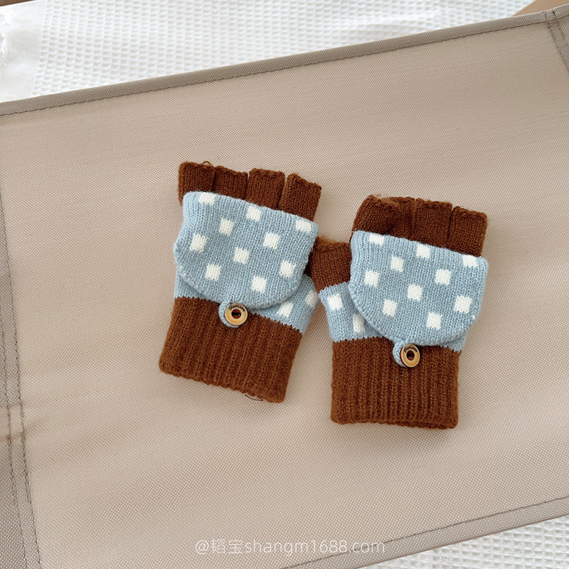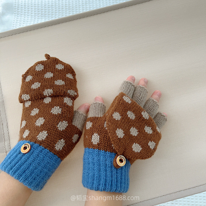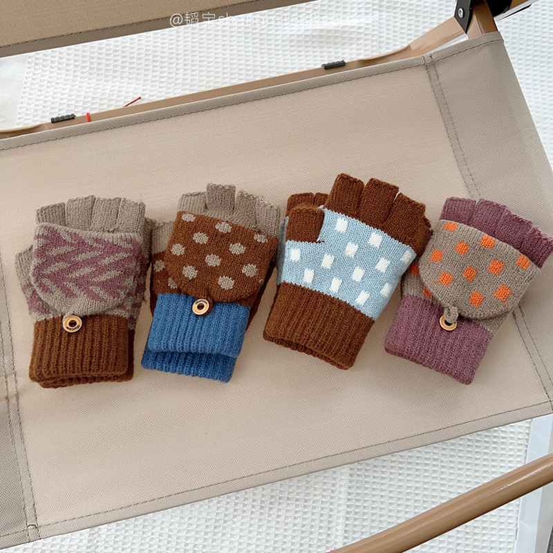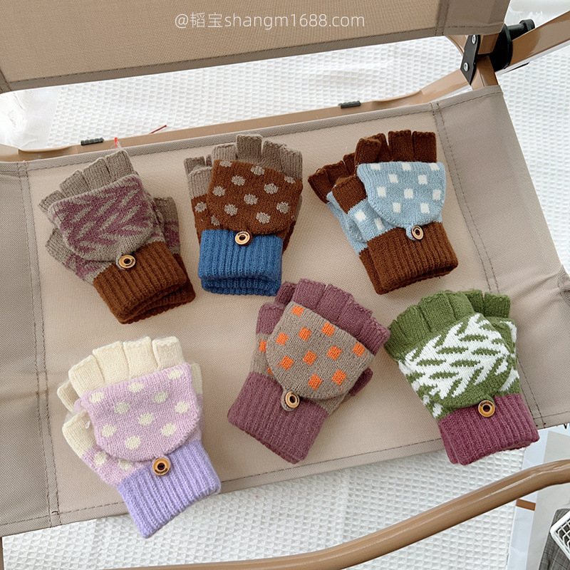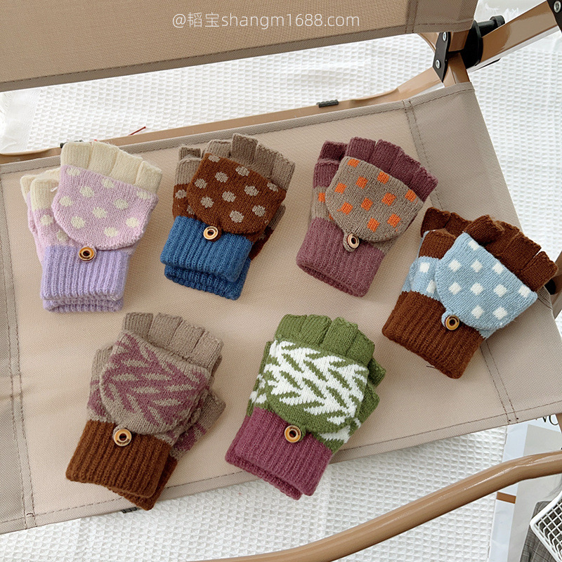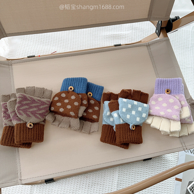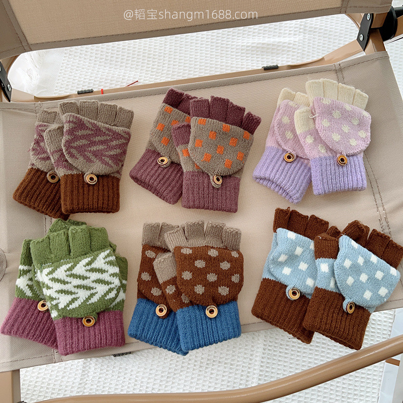 한국의 새로운 어린이 가을 겨울 장갑 소년 소녀 용 플립 5 손가락 장갑 따뜻한 학교 반손가락 장갑스토어 가기