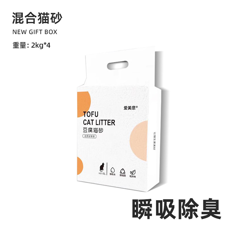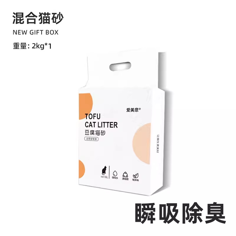 Aimeiyi 혼합 두부 고양이 쓰레기 저먼지 강한 응집 수세식 화장실 두부 고양이 쓰레기 2kg 포장 고양이 쓰레기 도매