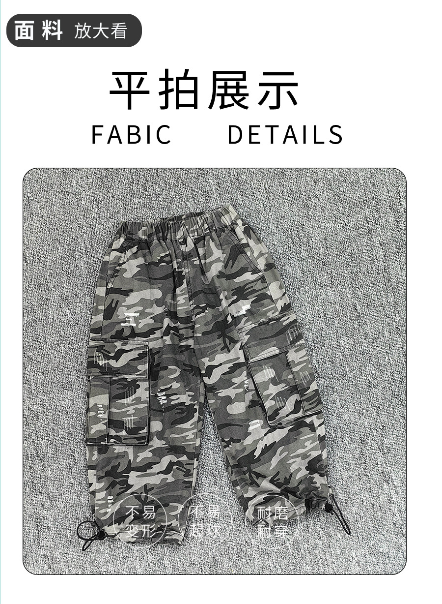 코튼샵 봄 한국 스타일 남아 2025 신상 캐주얼 팬츠 아동복 카모플라주 스타일 작업복 바지 다용도 롱 팬츠스토어 가기
