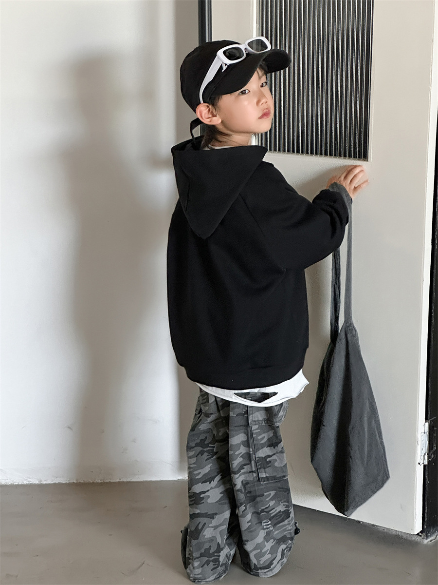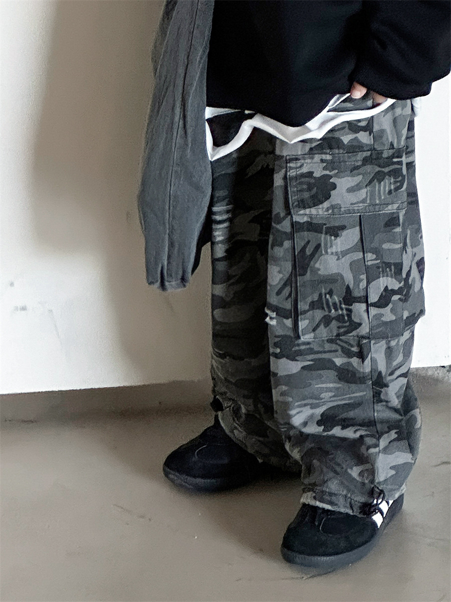 코튼샵 봄 한국 스타일 남아 2025 신상 캐주얼 팬츠 아동복 카모플라주 스타일 작업복 바지 다용도 롱 팬츠