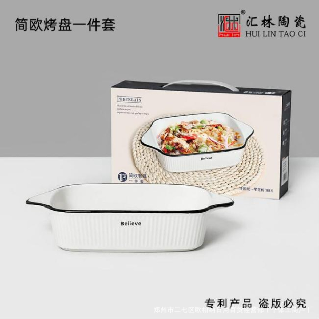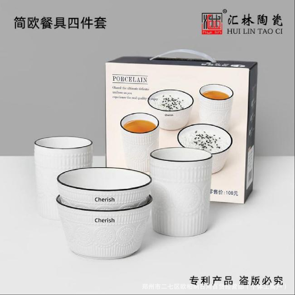 Huilin Ceramics-클래식 간단한 유럽 세라믹 식기 3 피스 세트 수직 패턴 세라믹 그릇 식기 세트 선물 도매