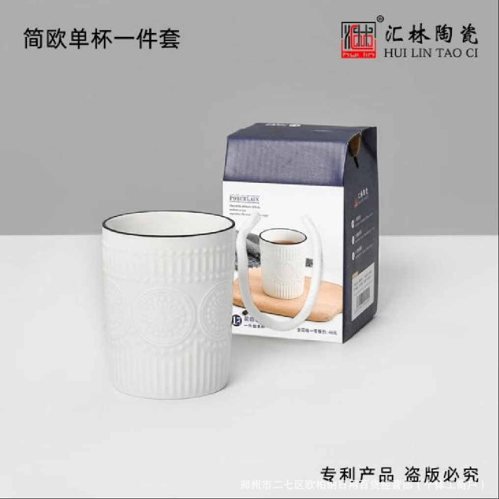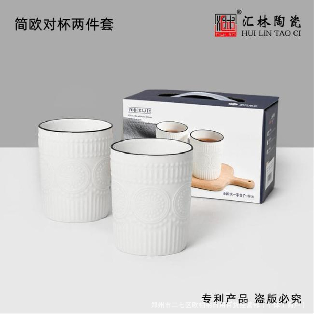 Huilin Ceramics-클래식 간단한 유럽 세라믹 식기 3 피스 세트 수직 패턴 세라믹 그릇 식기 세트 선물 도매스토어 가기