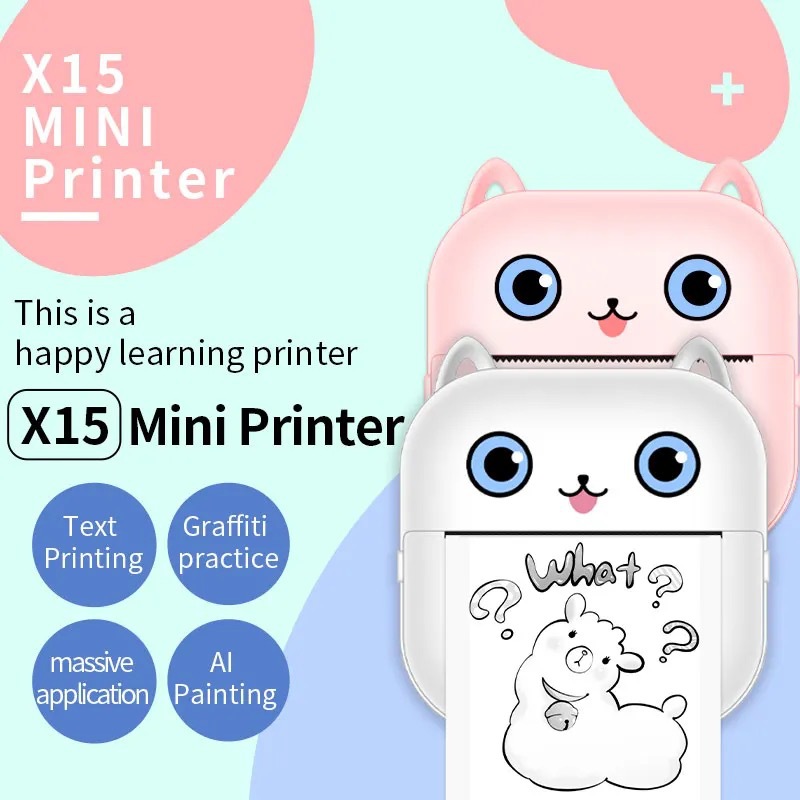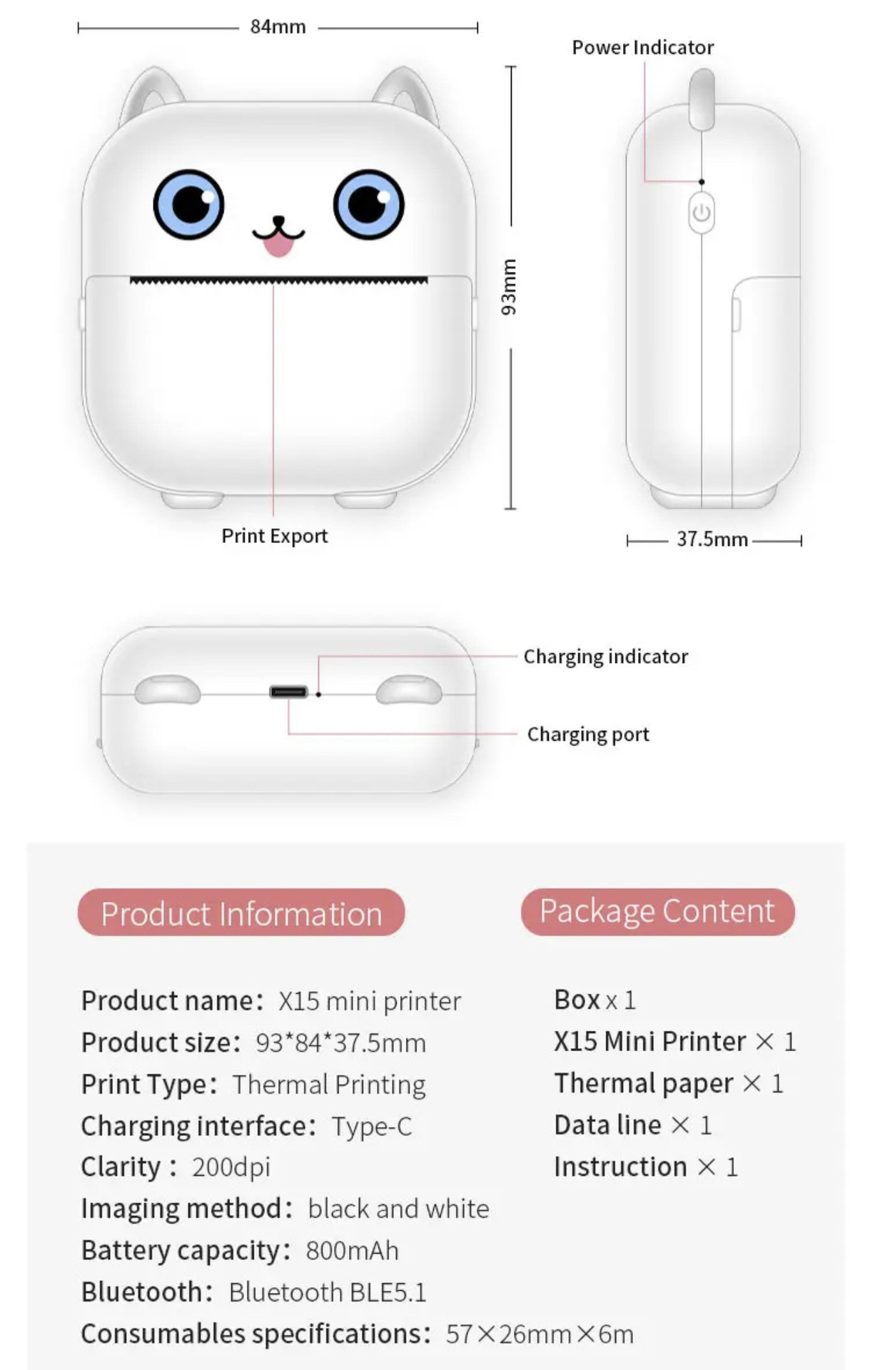 국경 새로운 만화 고양이 작은 휴대용 미니 포켓 그림 라벨 잘못된 주제 열 블루투스 프린터