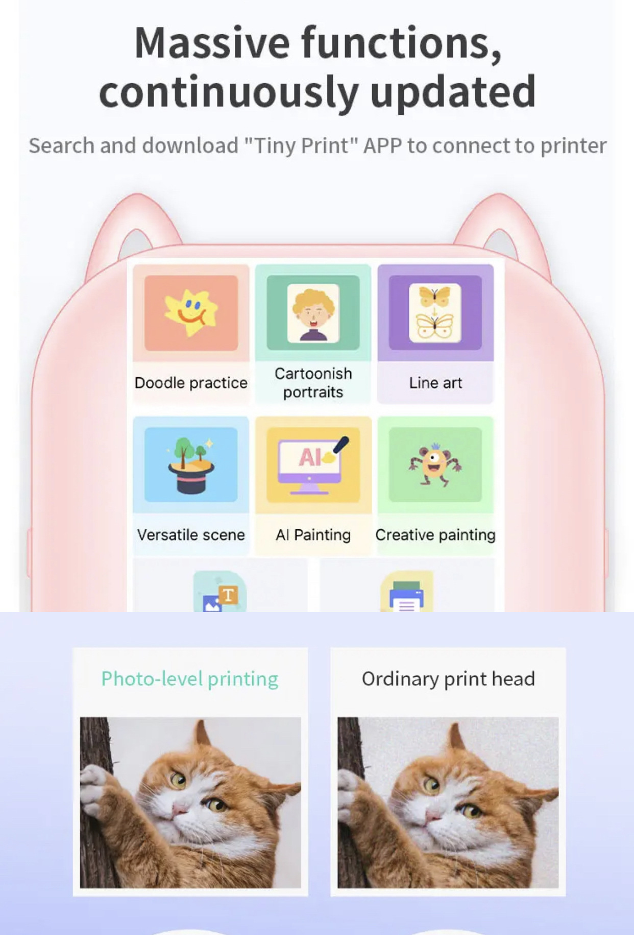 국경 새로운 만화 고양이 작은 휴대용 미니 포켓 그림 라벨 잘못된 주제 열 블루투스 프린터스토어 가기