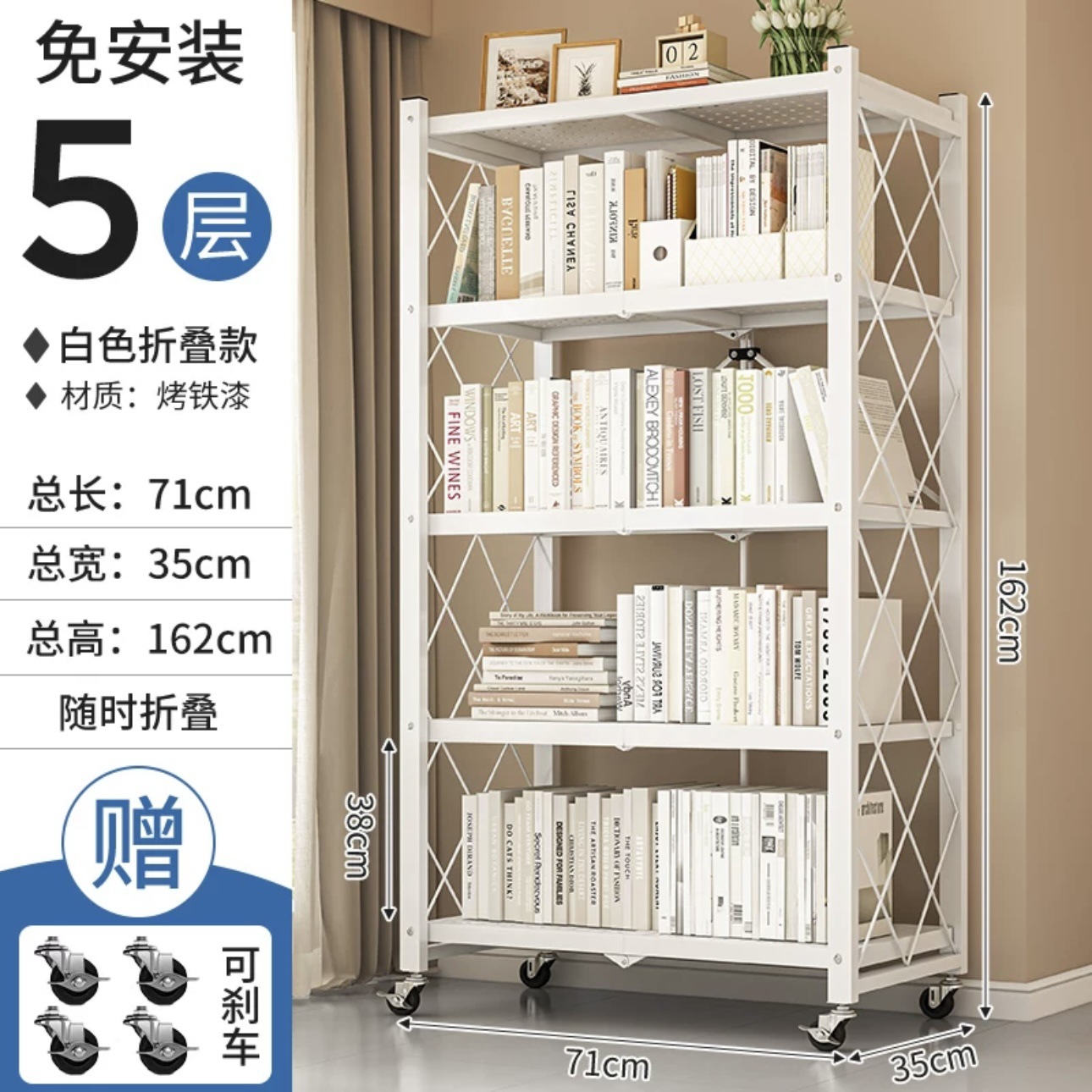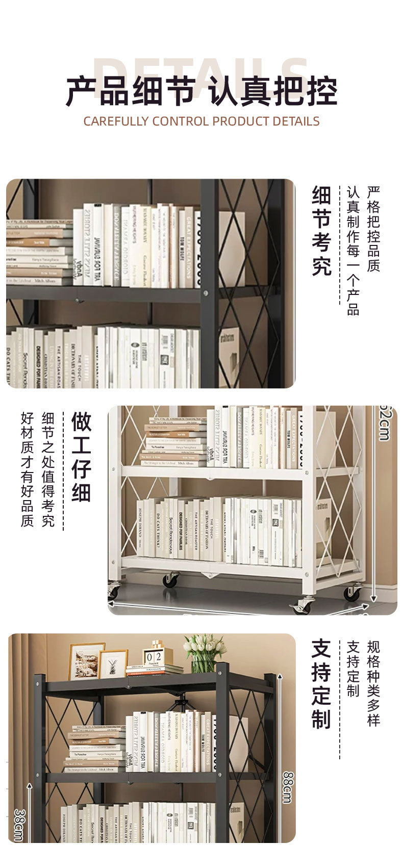 설치가 필요 없는 이동식 철제 책장 바퀴 달린 거실 접이식 수납 선반 간편한 보관 어린이용 작은 책장