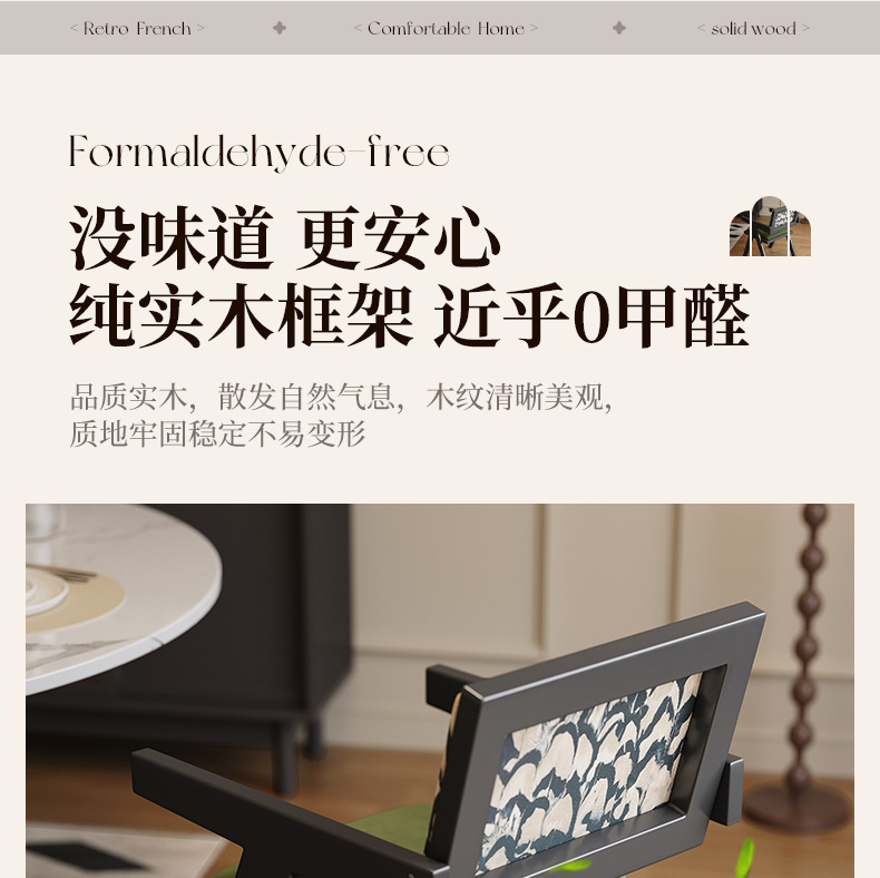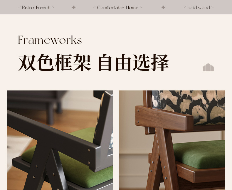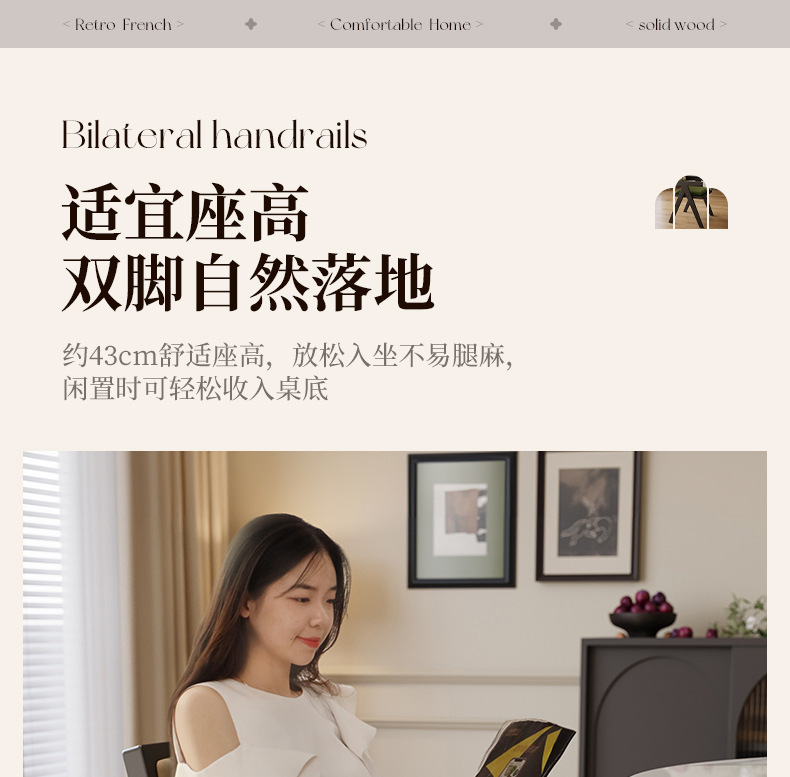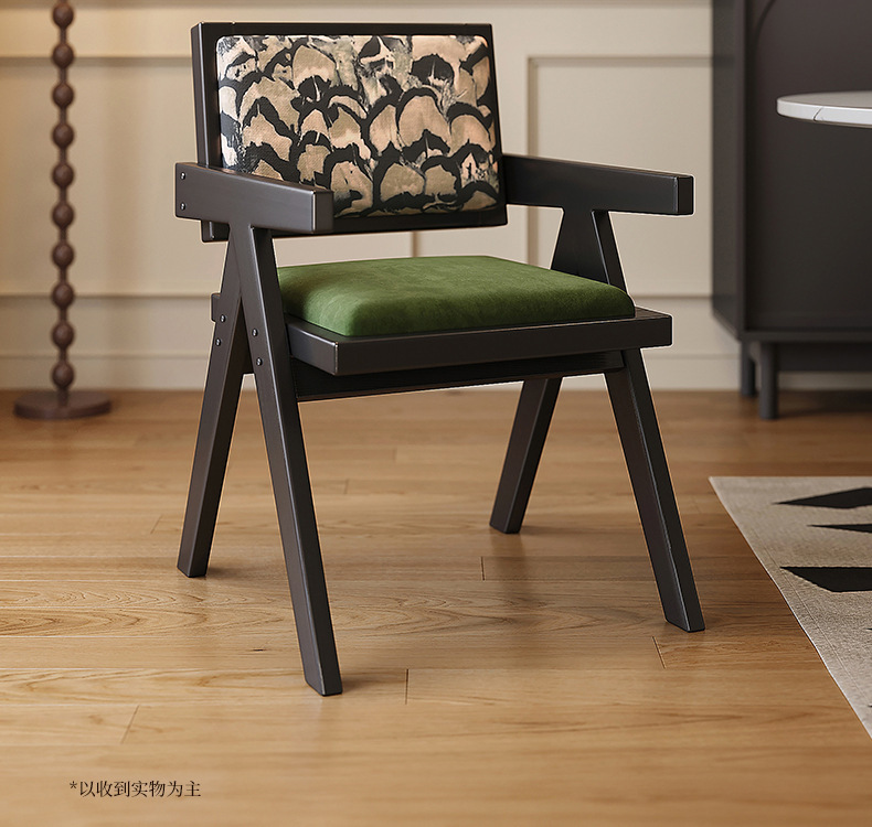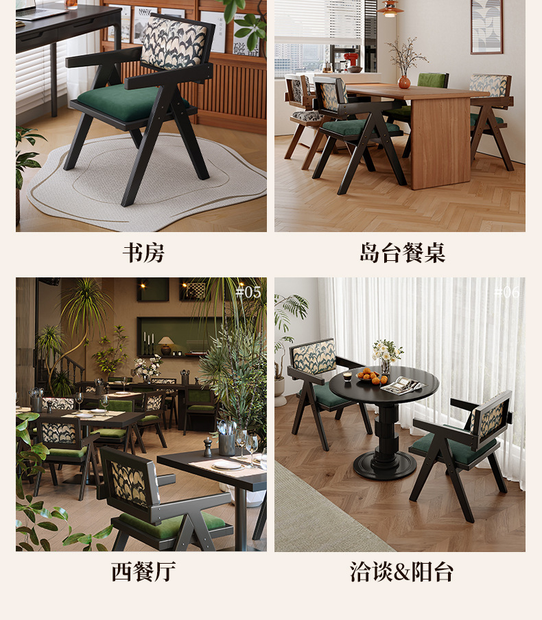 餐椅家用实木椅子法式复古软包扶手靠背椅阳台茶椅中古昌迪加尔椅