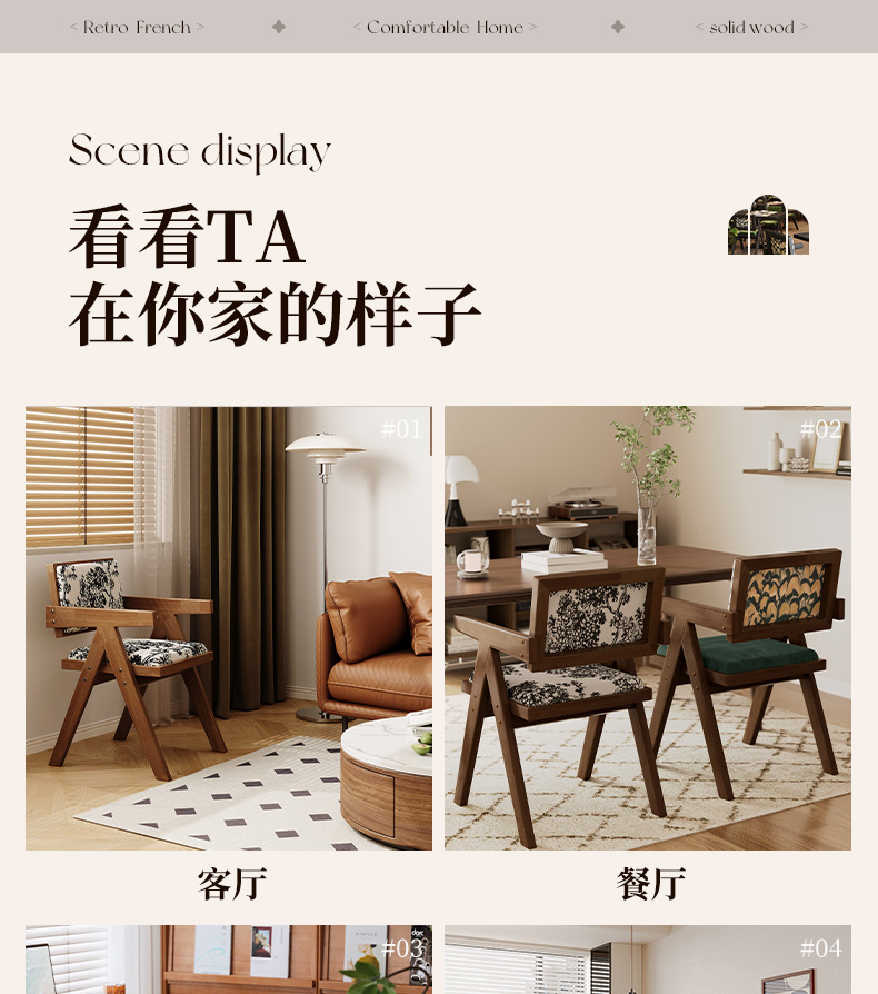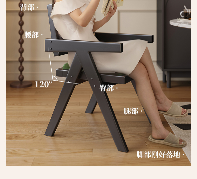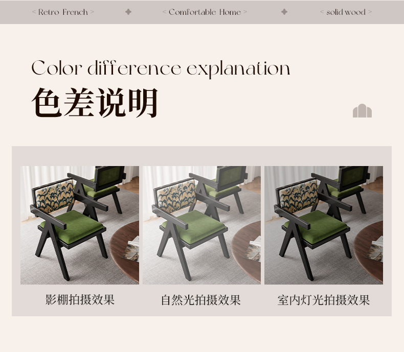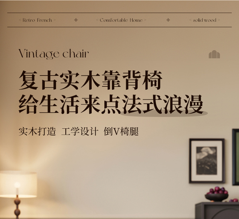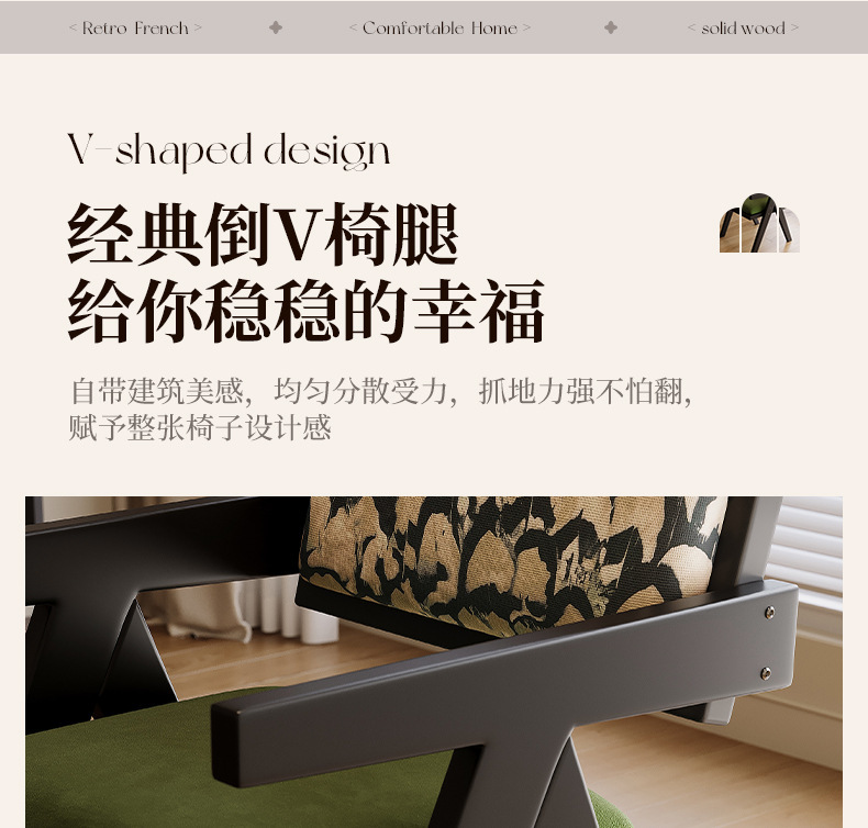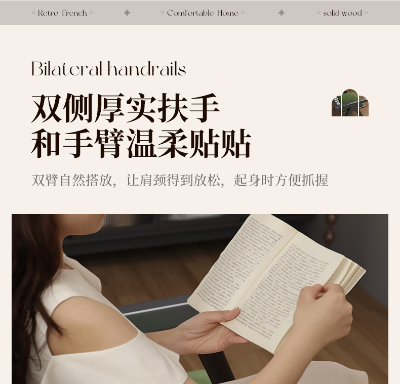 餐椅家用实木椅子法式复古软包扶手靠背椅阳台茶椅中古昌迪加尔椅