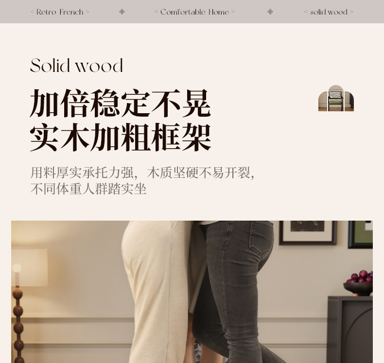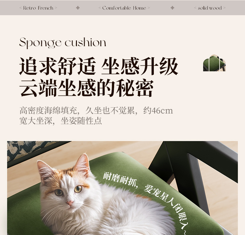 식당 의자 홈 솔리드 우드 의자 프렌치 레트로 소프트 백 레스트 백레스트 의자 발코니 티 의자 중동 고대 찬디 가르 의자스토어 가기