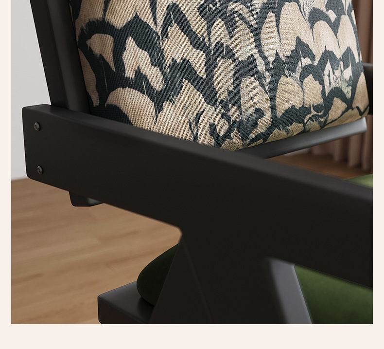 • 월넛 프레임 + 레트로 그린 시트 + 깃털 등받이