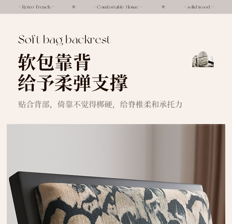 식당 의자 홈 솔리드 우드 의자 프렌치 레트로 소프트 백 레스트 백레스트 의자 발코니 티 의자 중동 고대 찬디 가르 의자