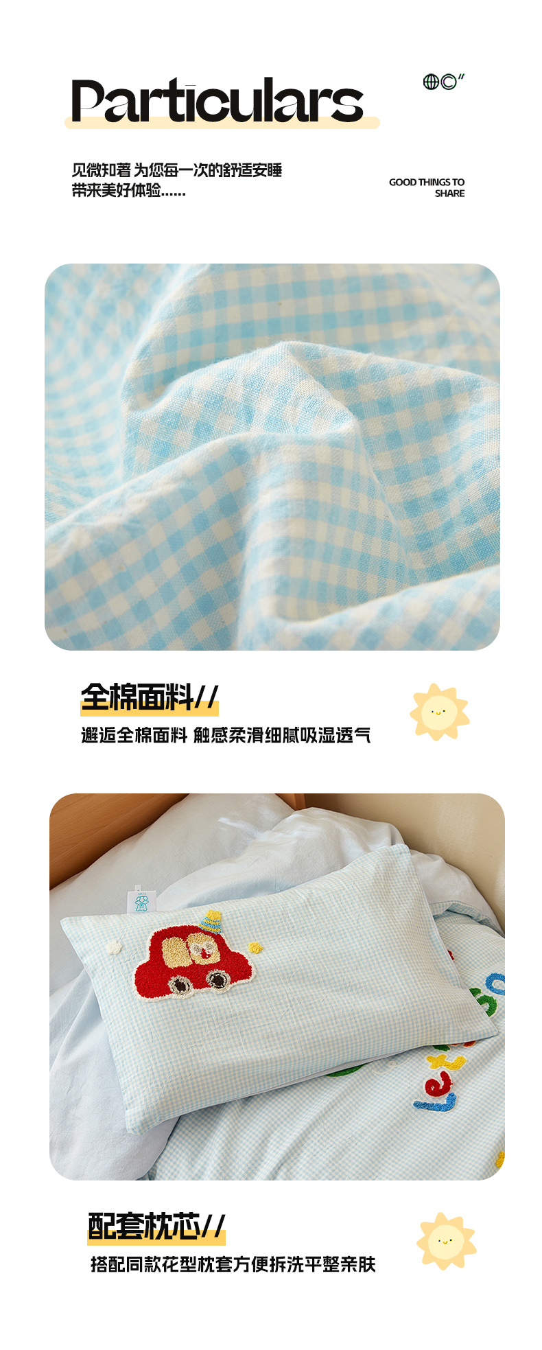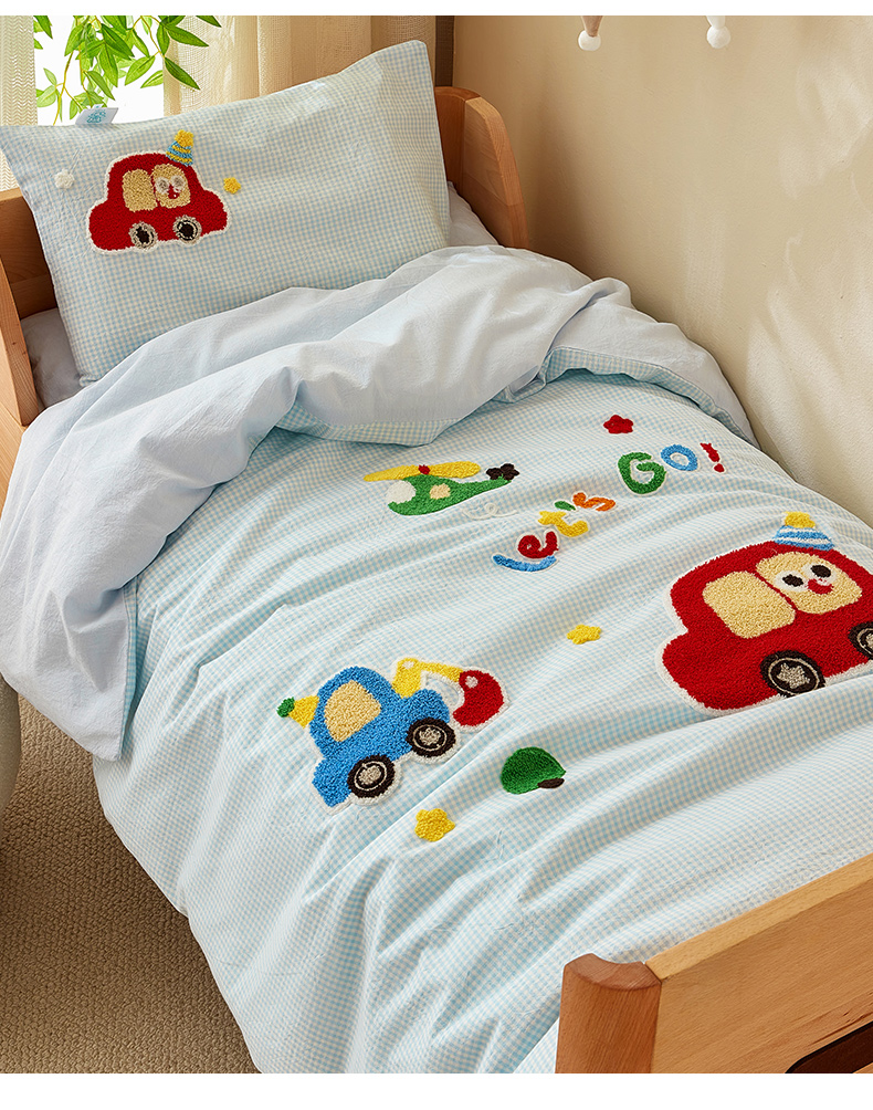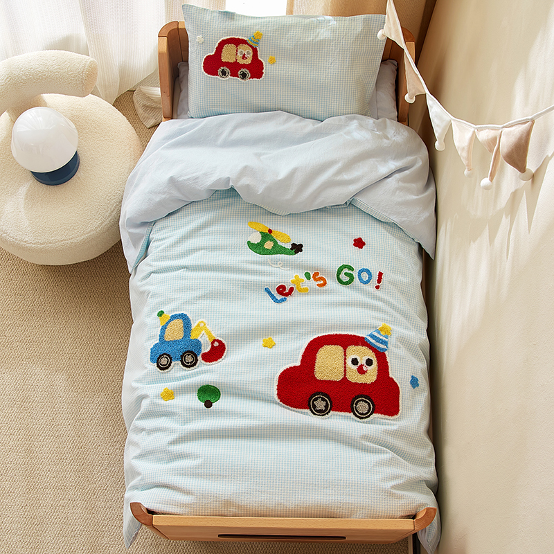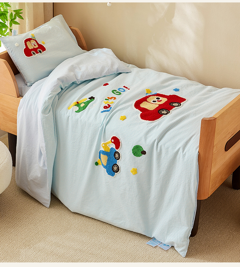 • 수건자수 면 아동용 3종세트 - 심선제외 [이불커버 120x150 + 쿠션커버 60x13]
