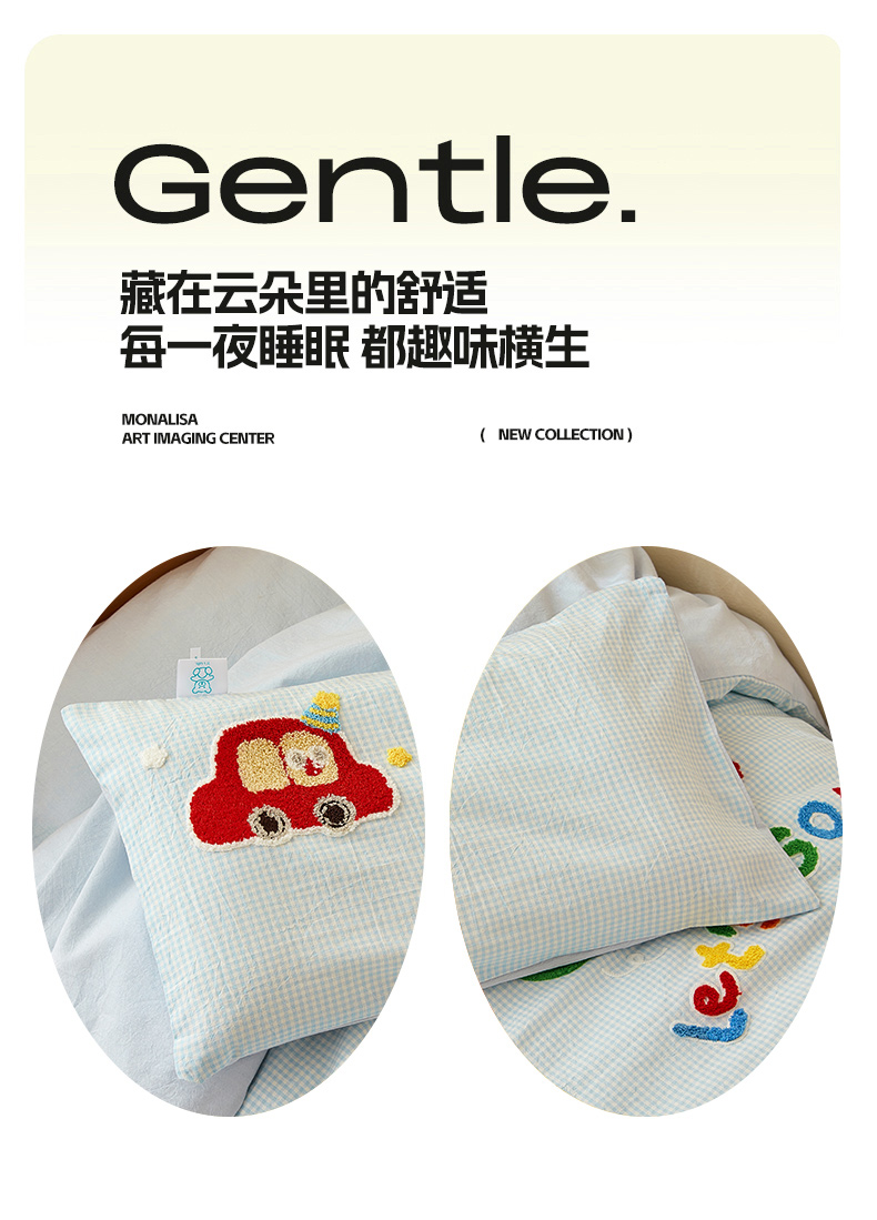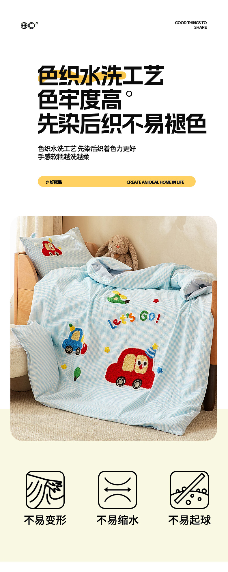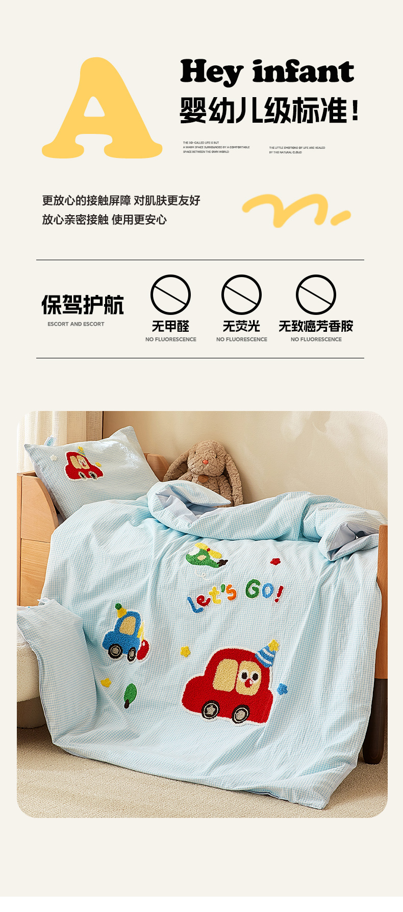 • 수건자수 면 아동용 3종세트 - 심선제외 [이불커버 120x150 + 쿠션커버 60x13]