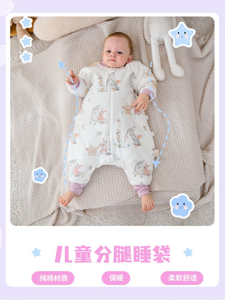 어린이 가을 슬리핑 백 퓨어 코튼 클래스 완전 오픈 레그 클립 코튼 크롤링 옷 슬리핑 백 분리 슬리브 킥 방지 퀼트 소년 소녀를위한