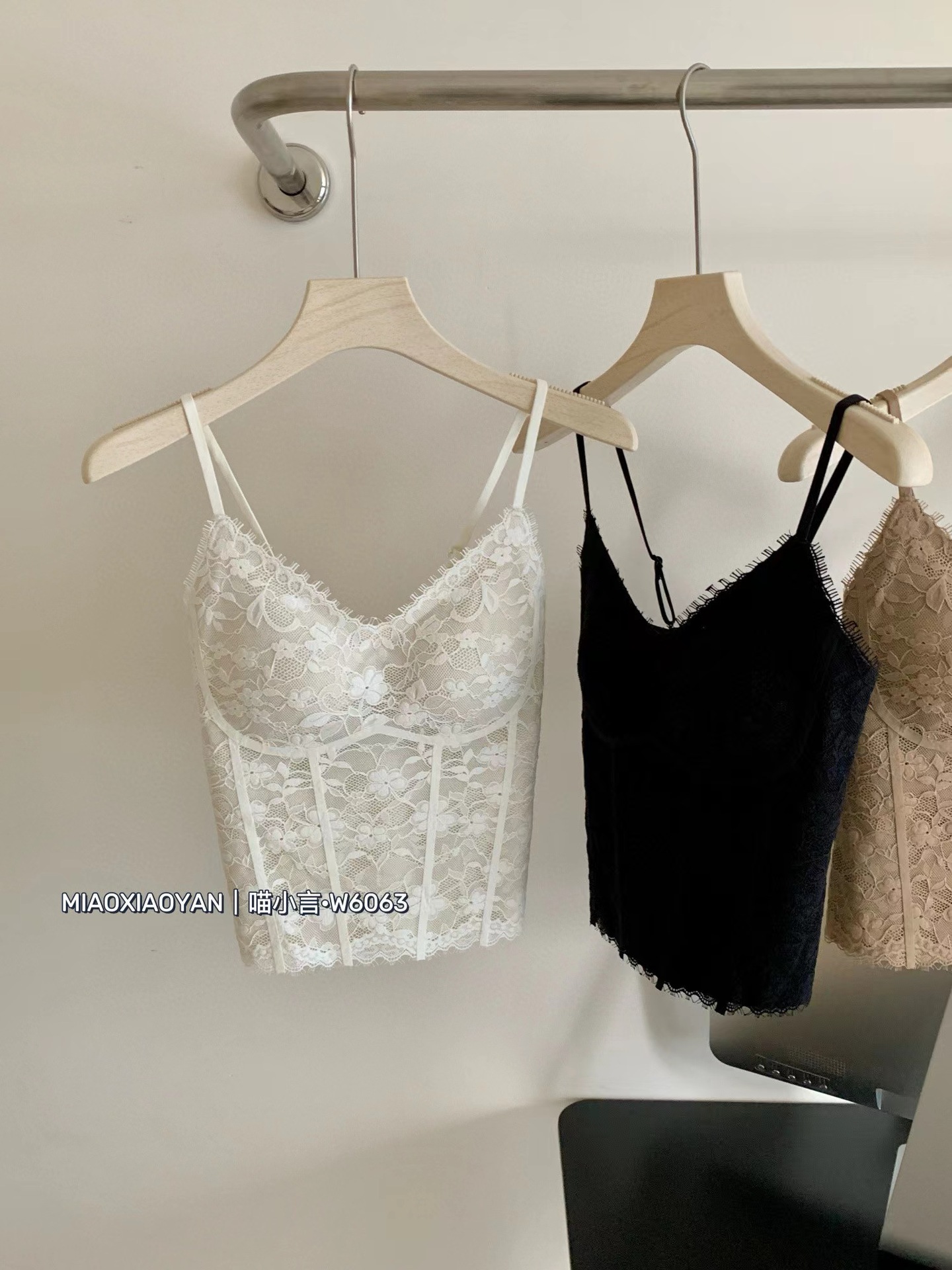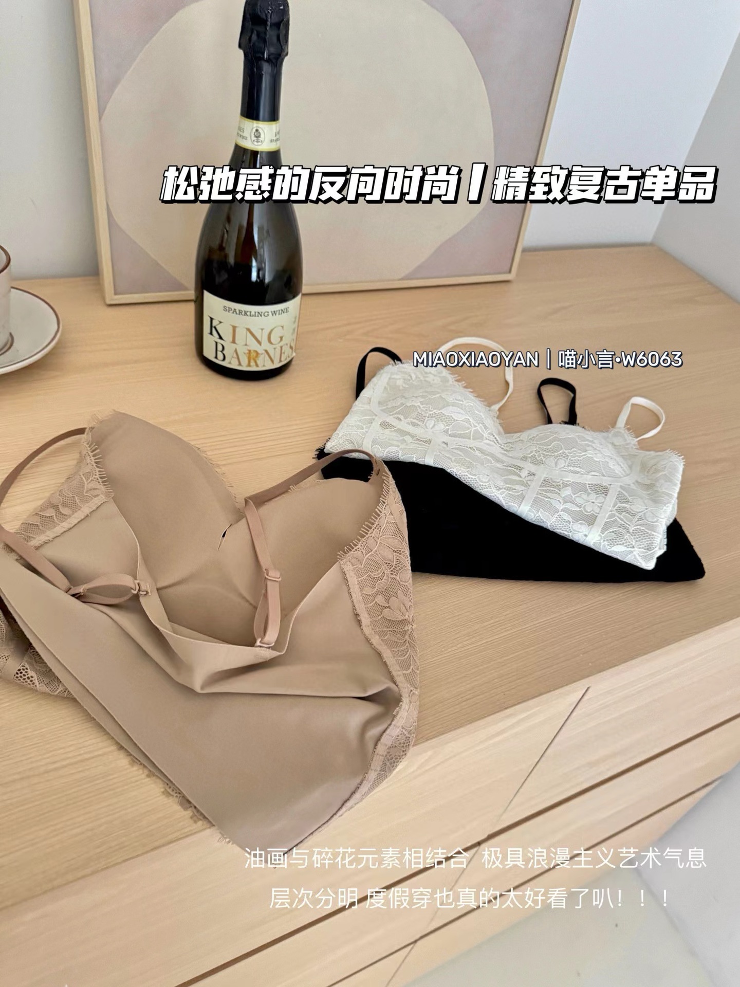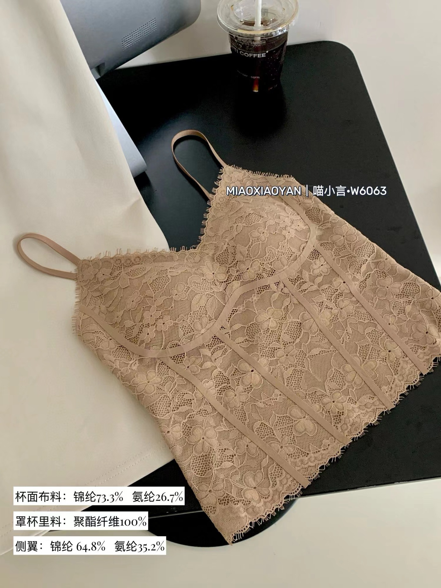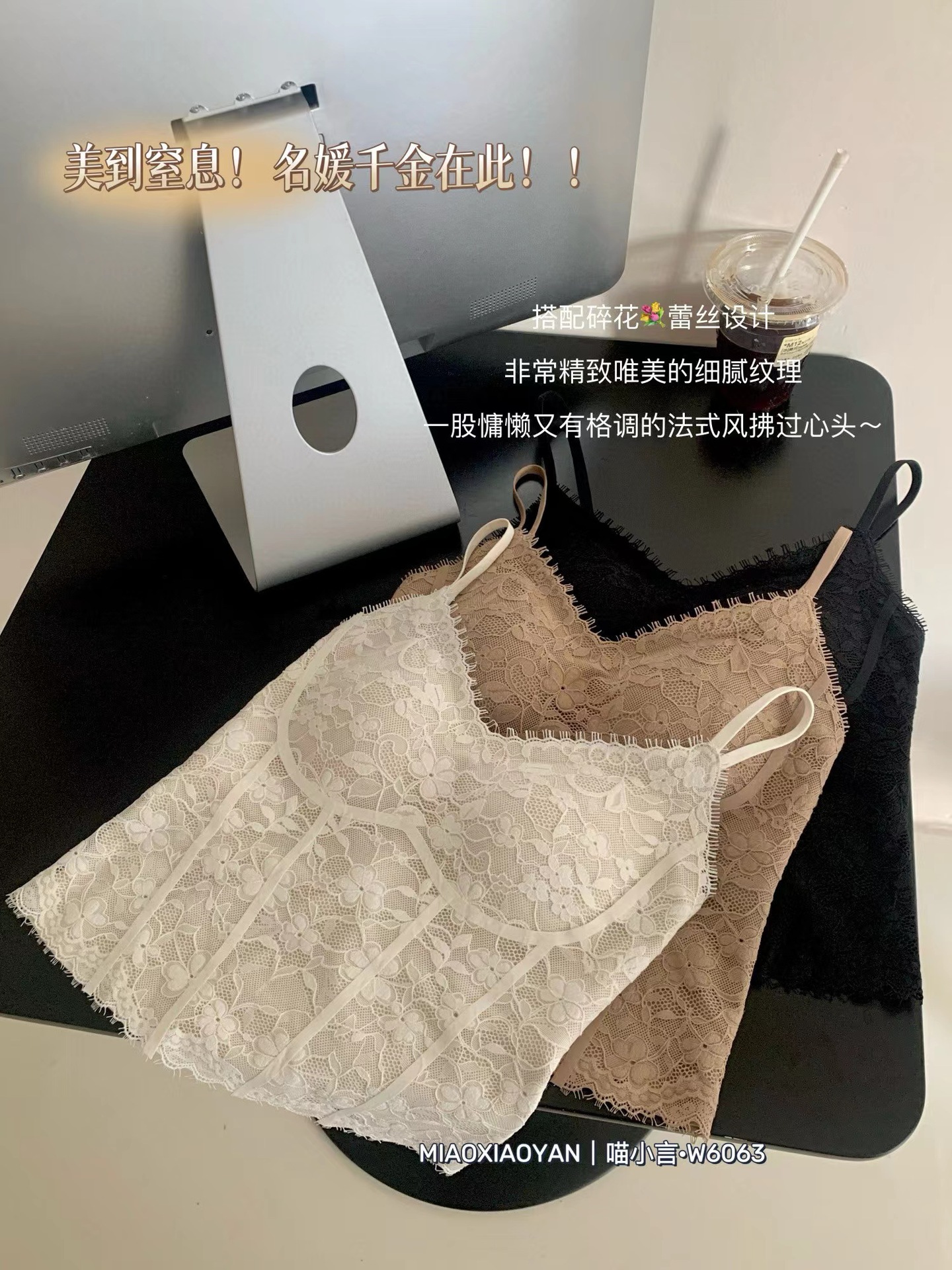 W6063 # 순수 레트로 플로랄 레이스 작은 슬링 간단한 조커 편안한 슬링 가슴 패드와 아름다운 여자를위한 뒷면스토어 가기
