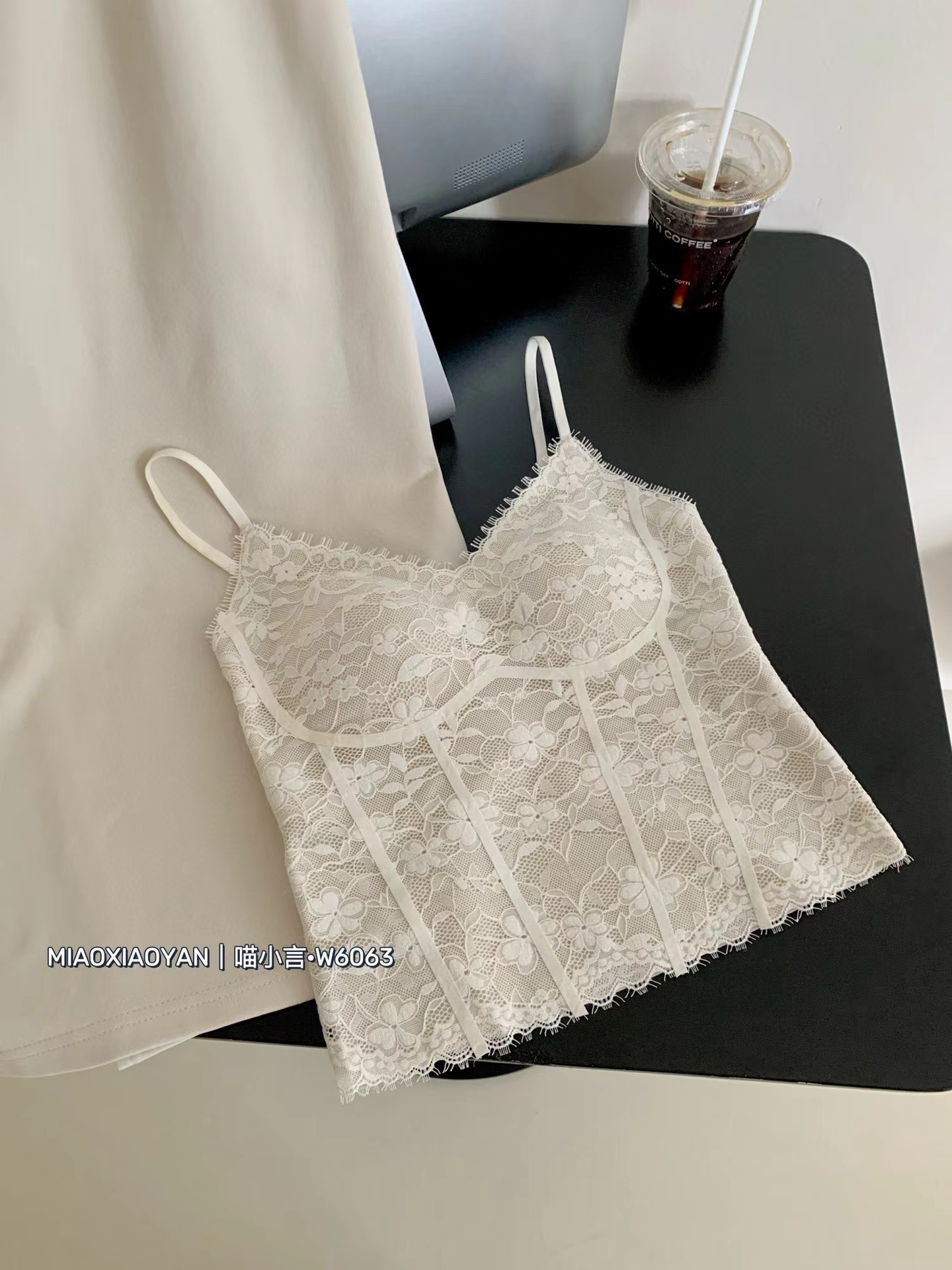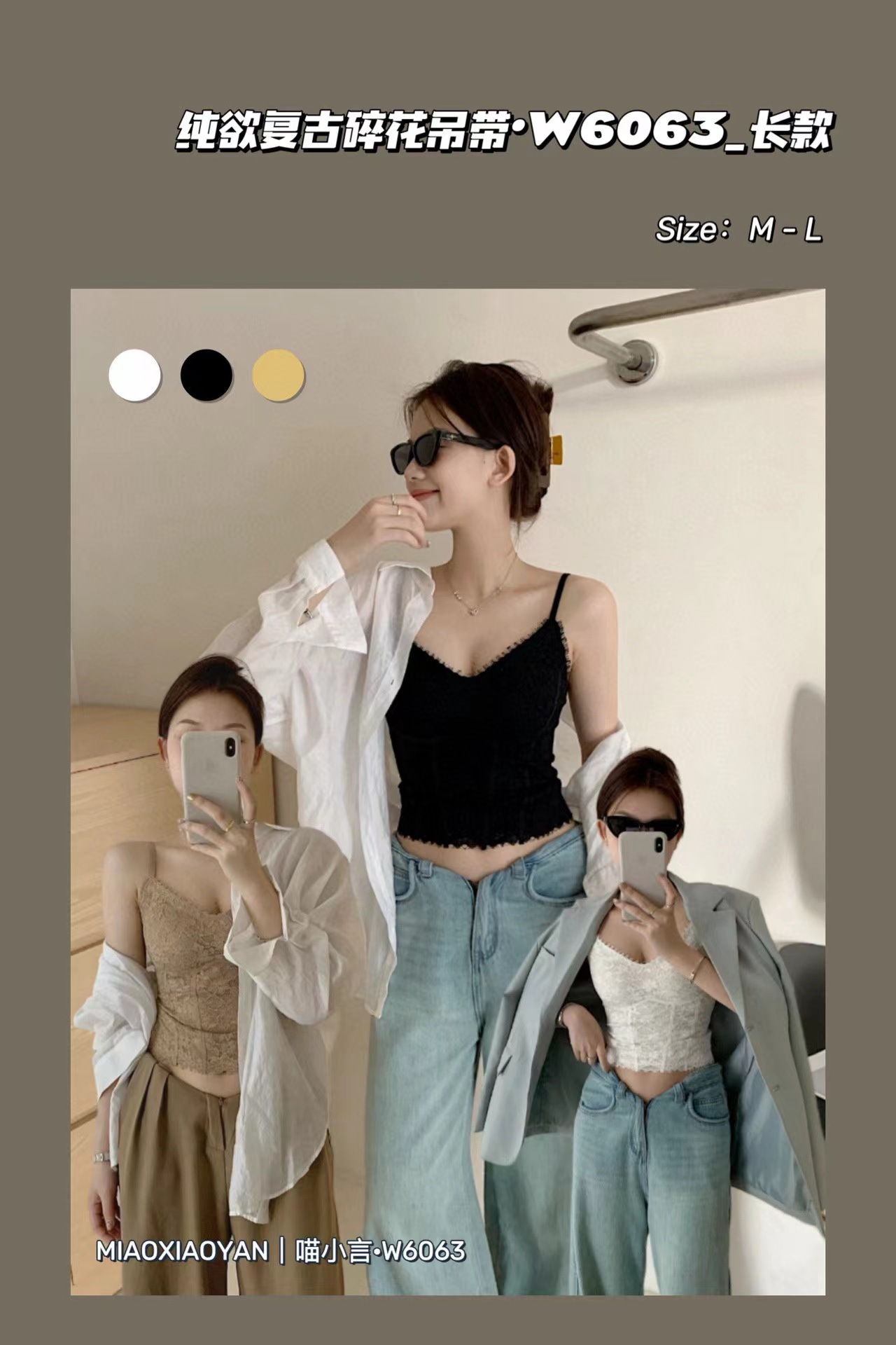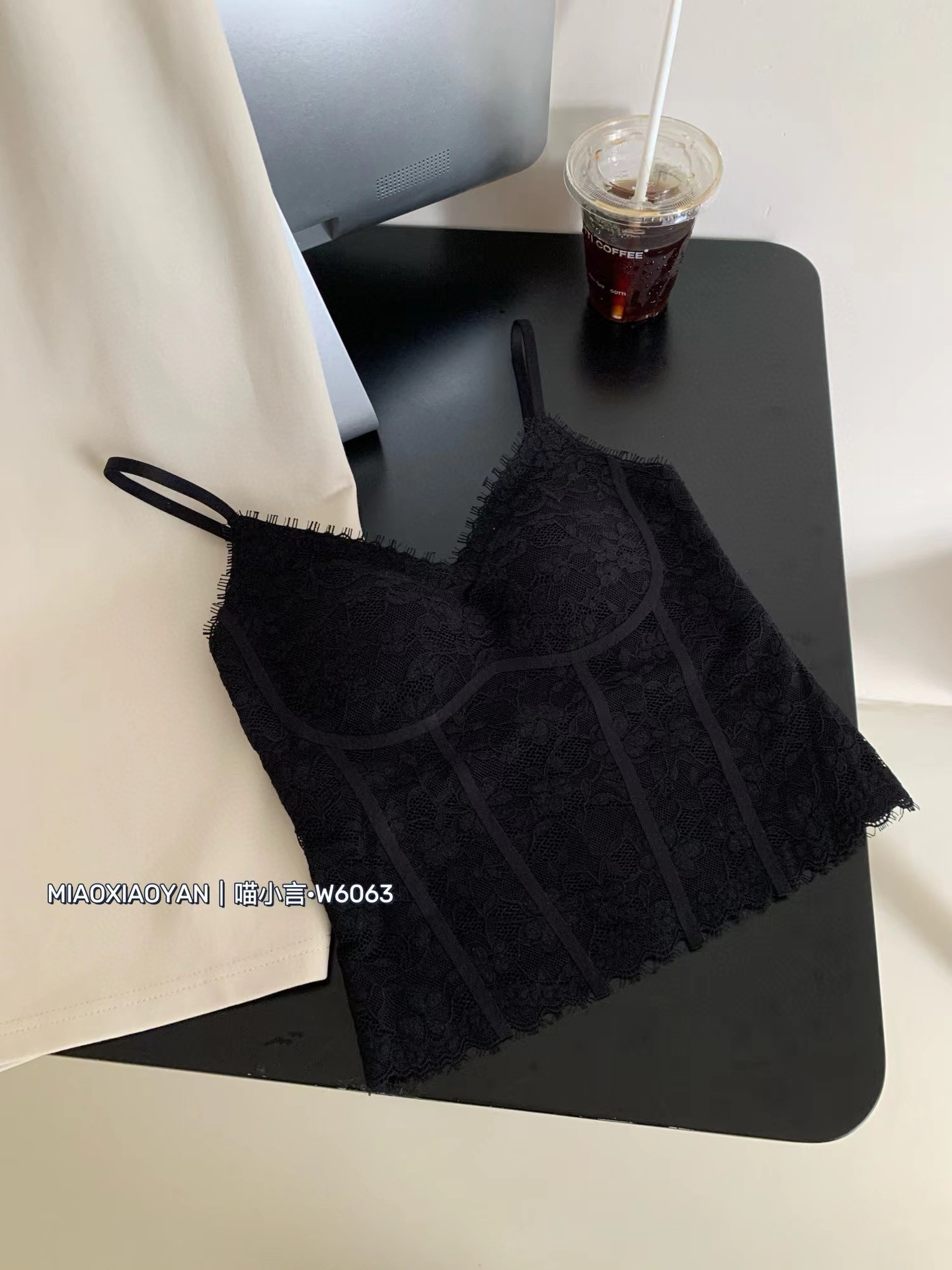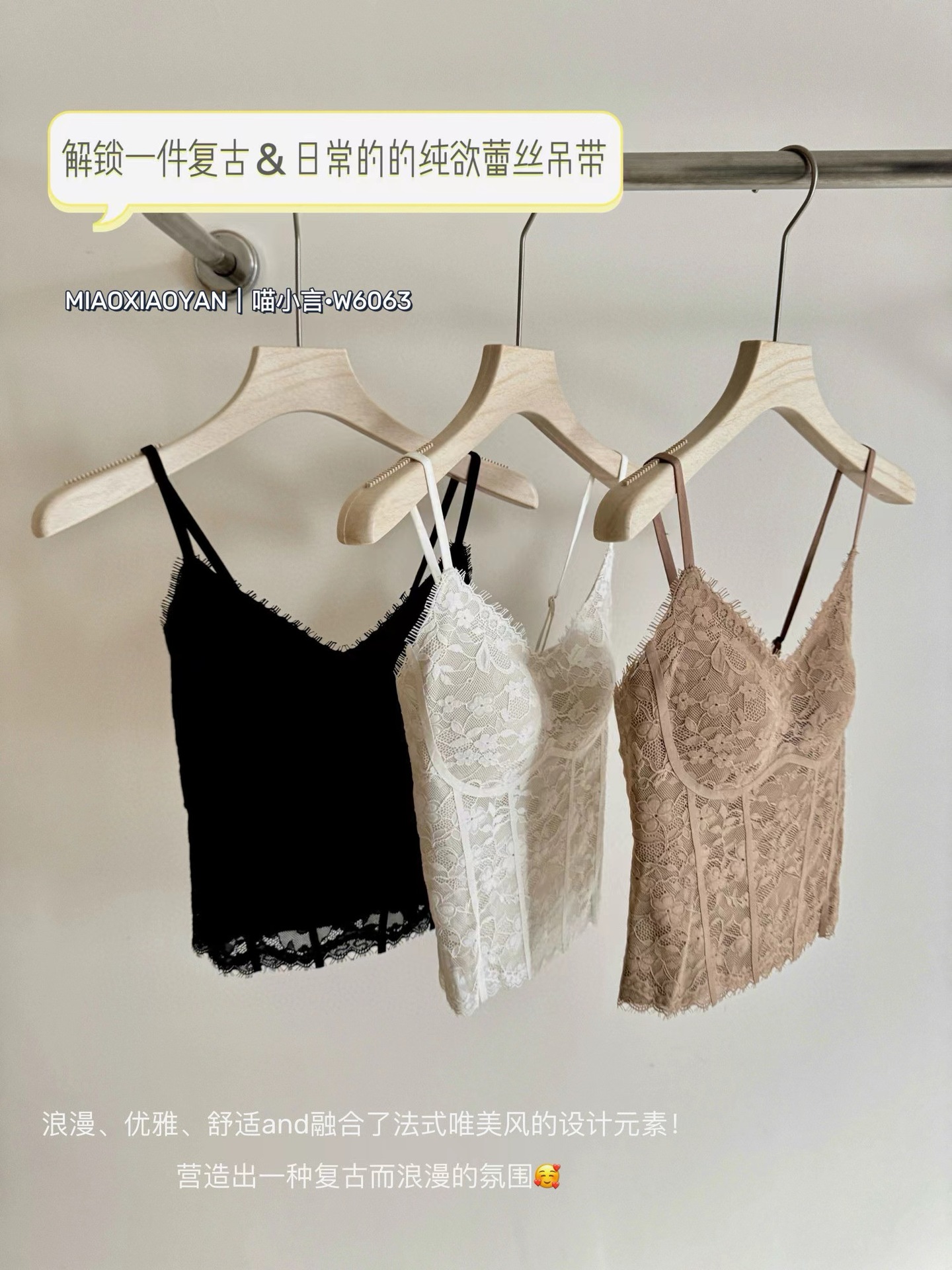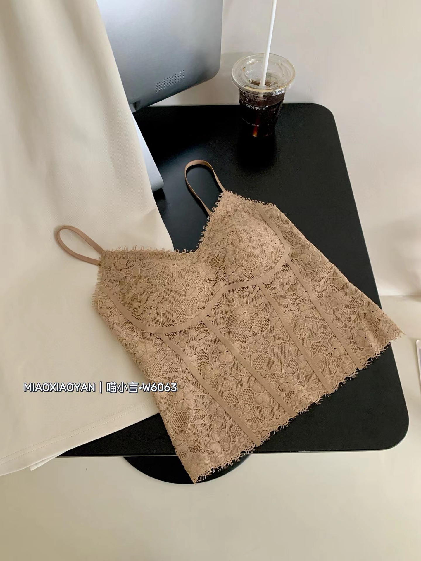W6063 # 순수 레트로 플로랄 레이스 작은 슬링 간단한 조커 편안한 슬링 가슴 패드와 아름다운 여자를위한 뒷면스토어 가기