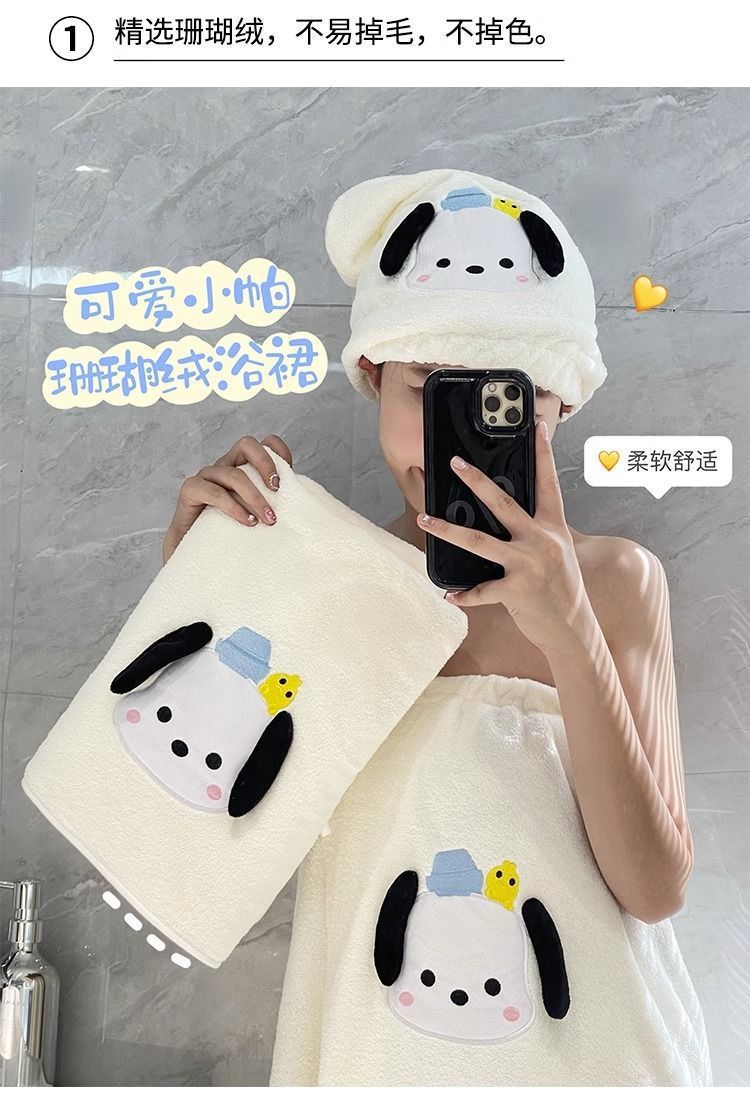 Ins 스타일 산호 양털 Parchal 개 타월 헤어 말린 모자 목욕 타월 목욕 스커트 착용 목욕 흡착제 목욕 수건 기숙사 세트 학생스토어 가기
